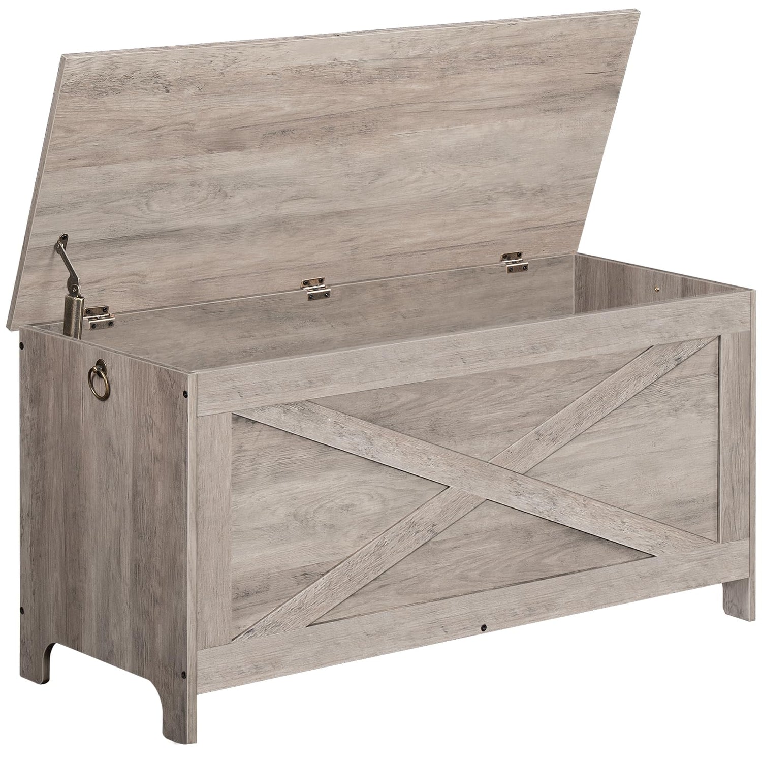 MAHANCRIS 39.4" Toy Chest, Sturdy Entryway Storage Chest with Safety Hinges, Retro Toy Box, Wooden Look Accent Furniture for Living Room, Bedroom, Greige SCHG48101