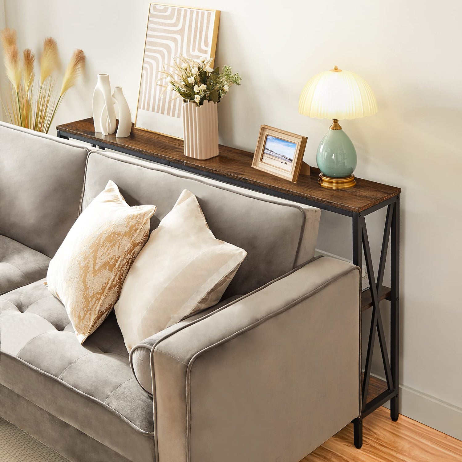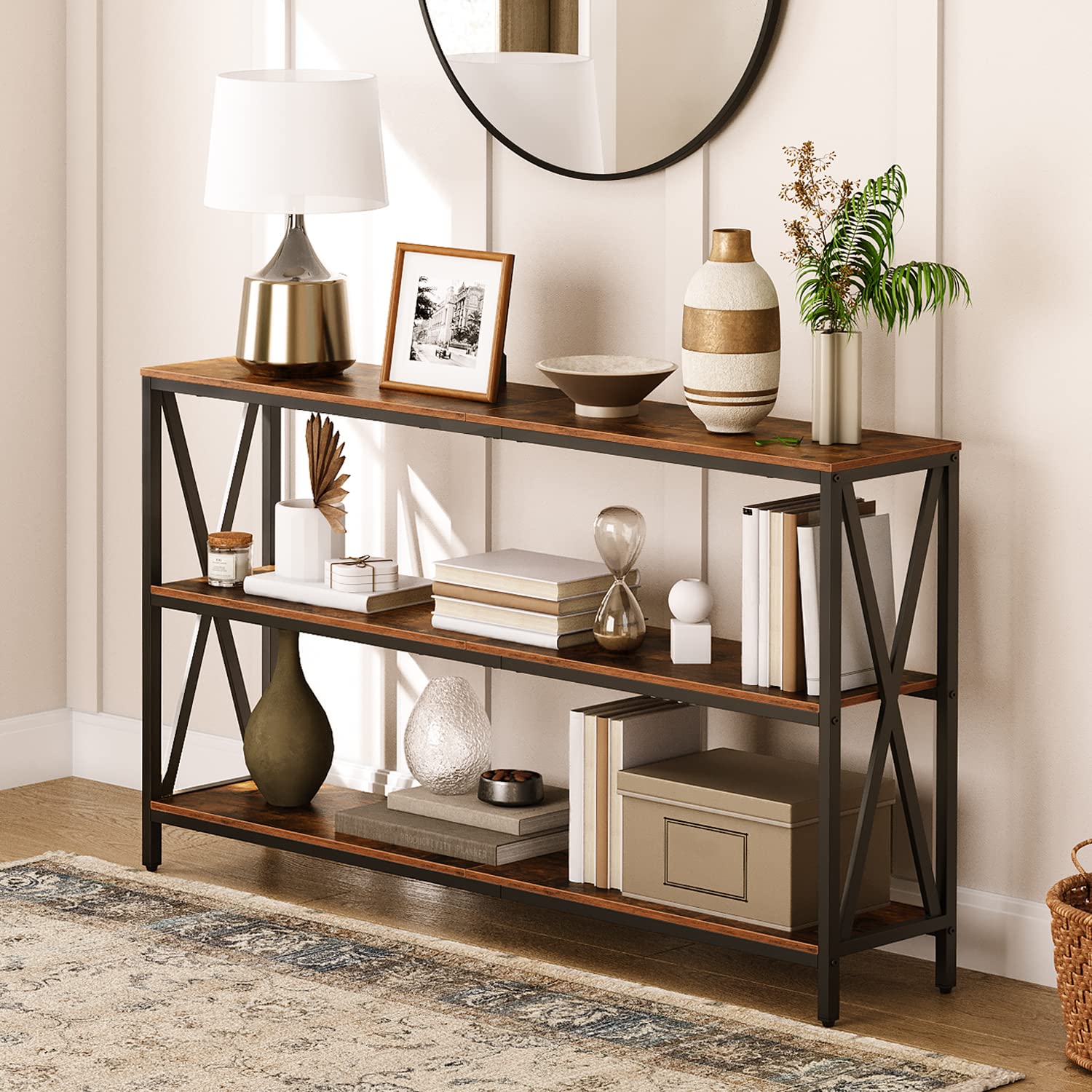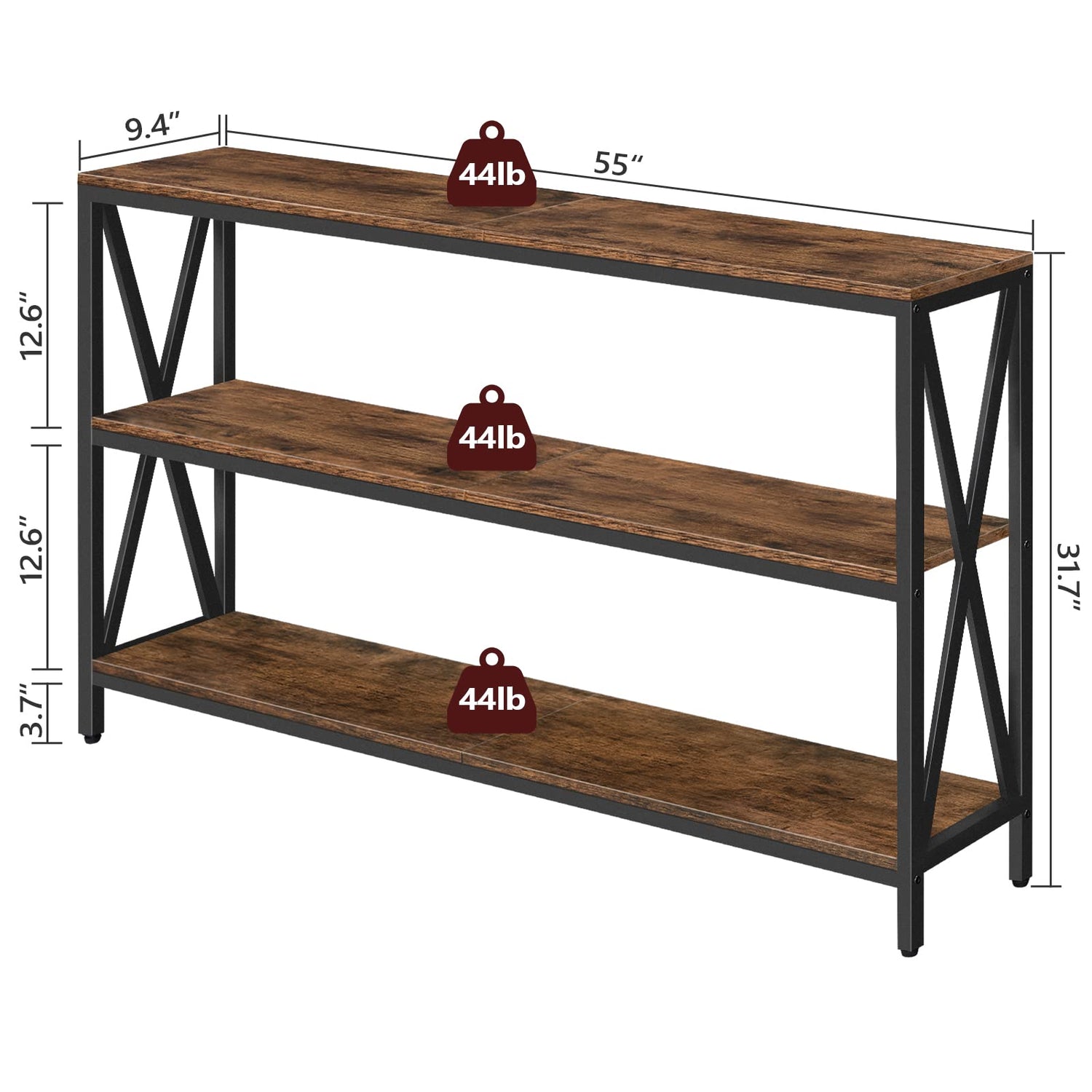 MAHANCRIS 55" Sofa Table, Industrial Console Table, 3-Tier Narrow Side Table with Open Shelves, Foyer Table for Entryway, Hallway, Kitchen, Living Room and Bedroom, Rustic Brown CTHR80401