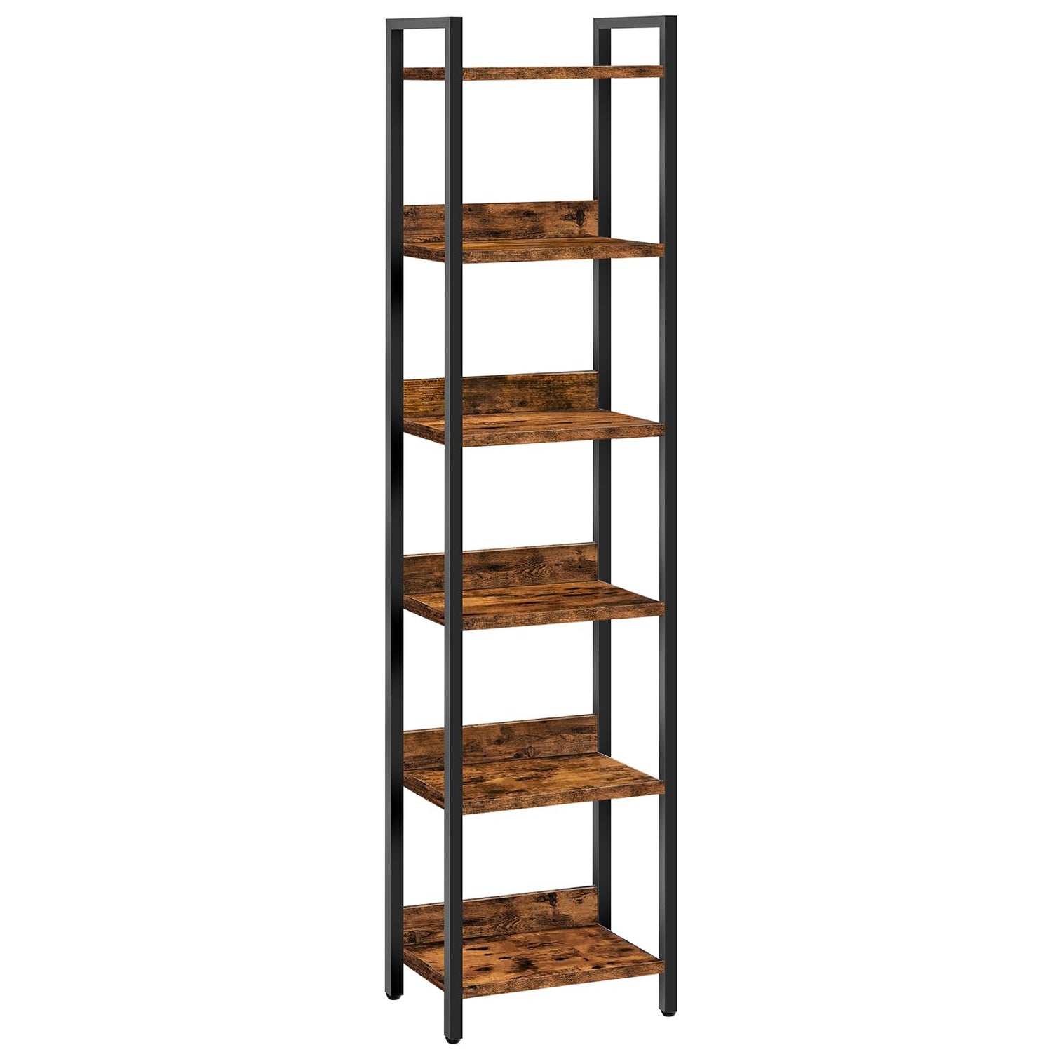 MAHANCRIS Bookshelf, 6-Tier Bookcase, Standing Book Shelf for Small Space, Storage Shelf Organizer, for Living Room, Bedroom, Study, Balcony, Rustic Brown and Black BKHR6601
