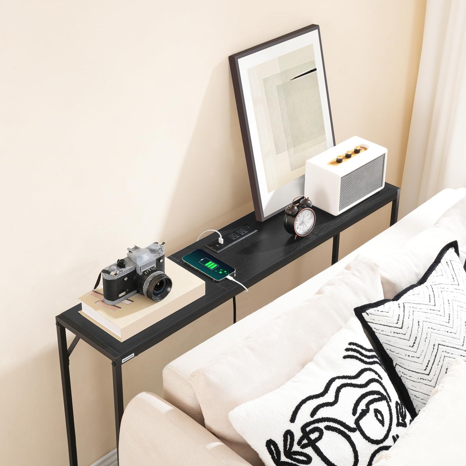 MAHANCRIS Console Table, Narrow Sofa Table, 43.3” Entrance Table with Power Station, Behind Couch Table, Simple Style, for Living Room, Hallway, Entryway, Foyer, Black CTHB112E01