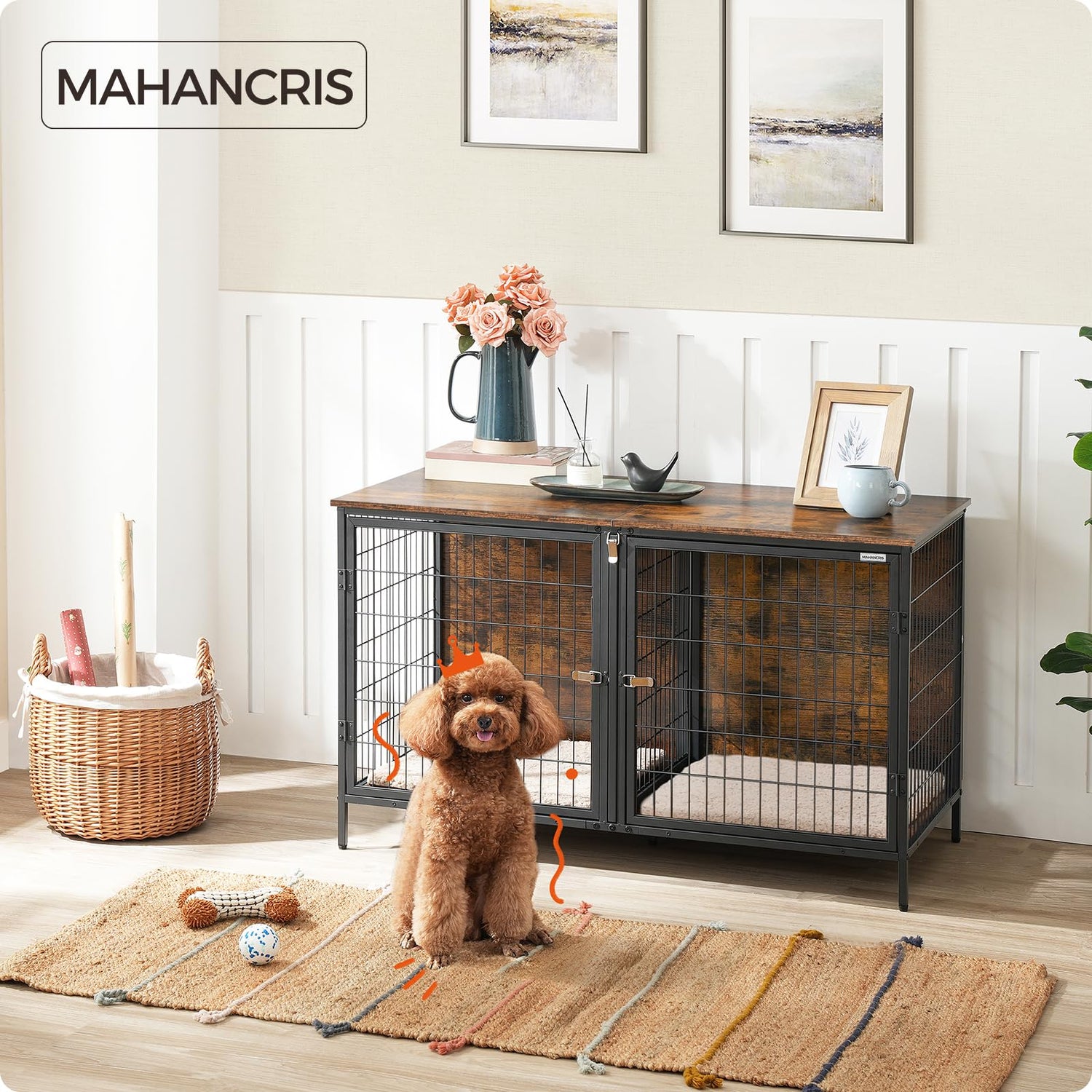 MAHANCRIS Dog Crate Furniture for 2 Dogs, 43.3" Dog Kennel with Removable Divider, Heavy Sturdy Dog Furniture Style Double Cage for Small Medium Dog, Indoor Dog House End Table, Rustic Brown DCHR1201