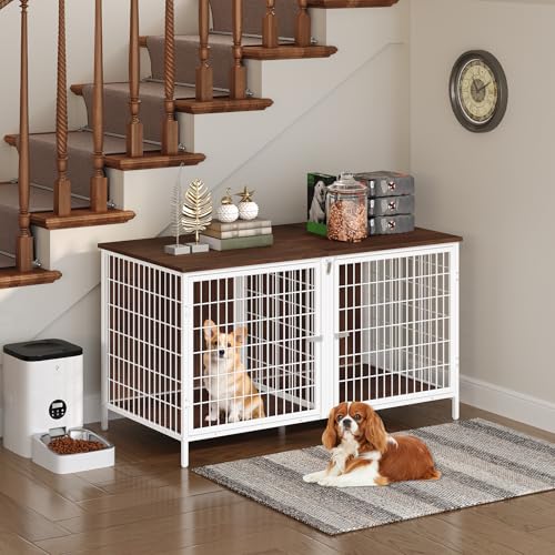 - Right Size: The size of the dog crate is 43.3"L x 21.7"W x 26.4"H, before purchasing, please measure the height and length of your pet to ensure enough comfort. This dog crate furniture has a spacious interior for your furry friend, suitable for 2 small dogs under 40 lb each, or a large dog under 80 lb