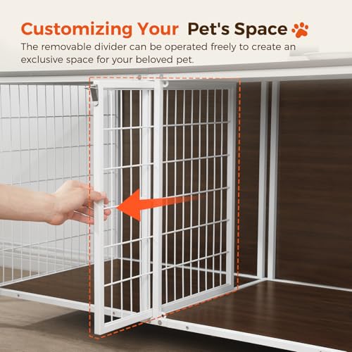 - Multifunctional Dog Cage: This vintage double dog crate with divider easily blends with any decors. The wide top is ideal for ornaments and various items, saving space. Besides as a cozy home for your dog, it can serve as a TV stand, storage cabinet, display stand, end table or side table