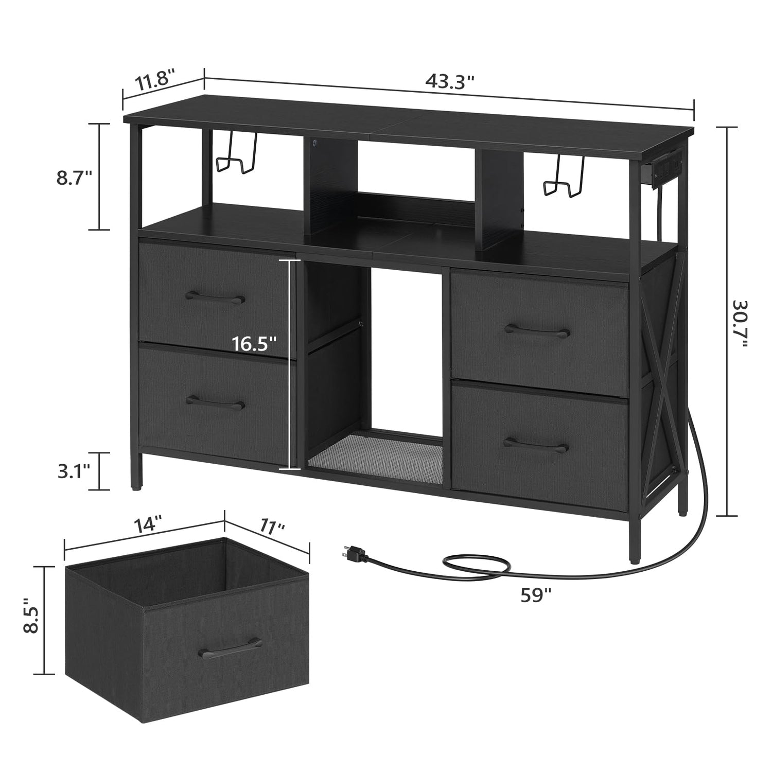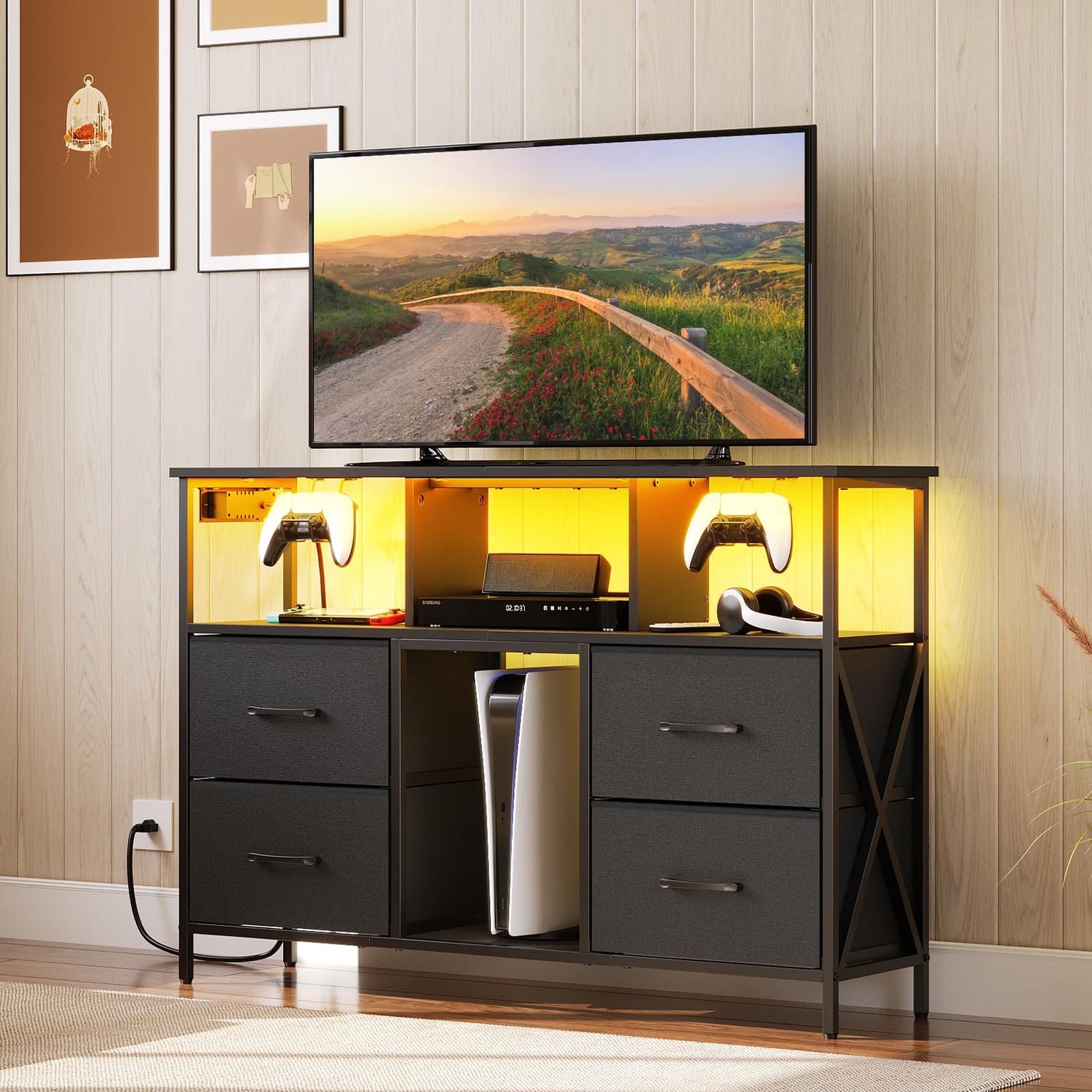 - Versatile Storage Solutions: Four non-woven fabric drawers on both sides neatly store game cards and other small items. The central metal grid shelf is ideal for holding speakers and large-sized equipment, offering strong support while facilitating heat dissipation