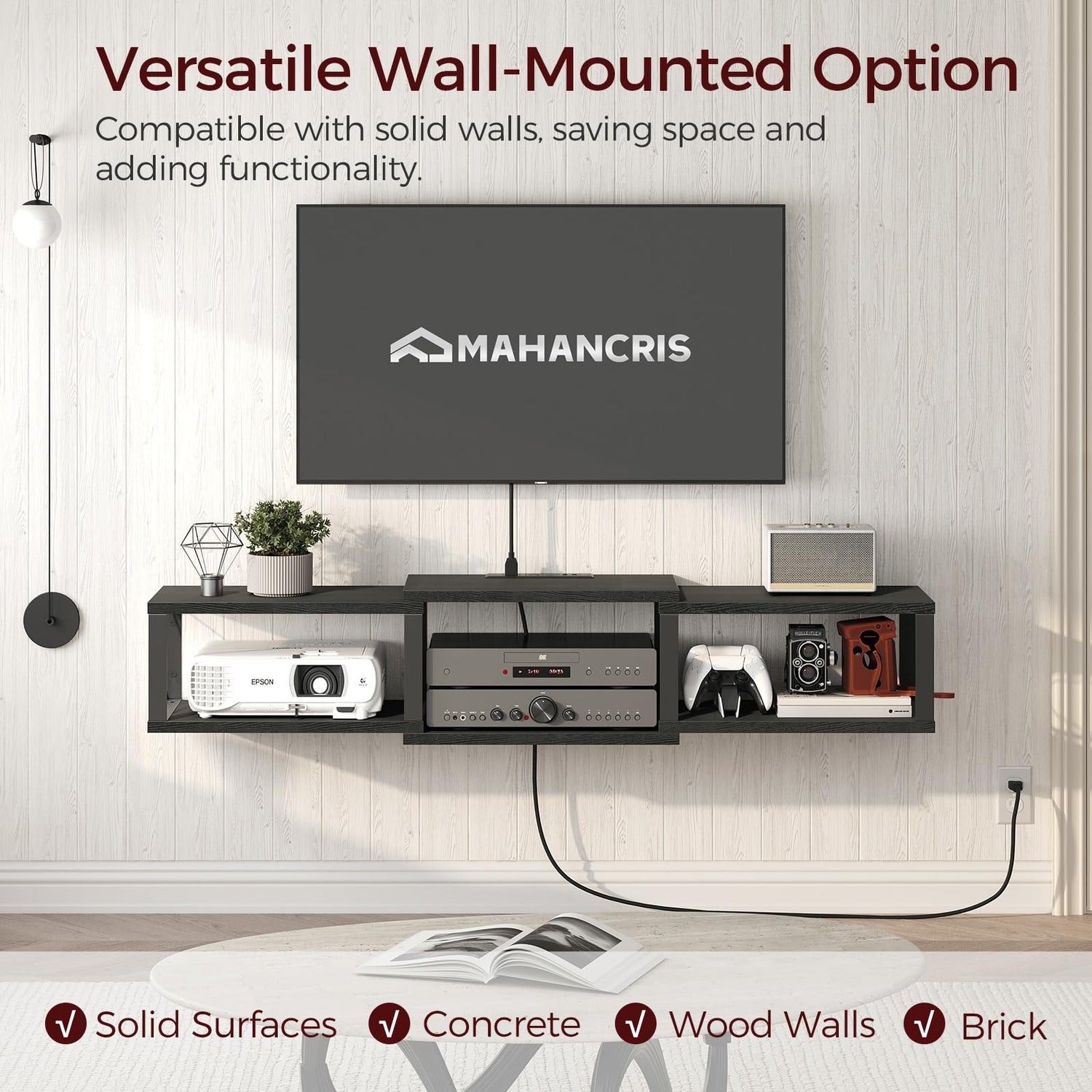 MAHANCRIS Floating TV Stand with Power Outlet, Wall-Mounted Entertainment Console Center with Storage, Floating TV Shelf for Under TV Storage, for Living Room, Bedroom, Black TVHB101E01