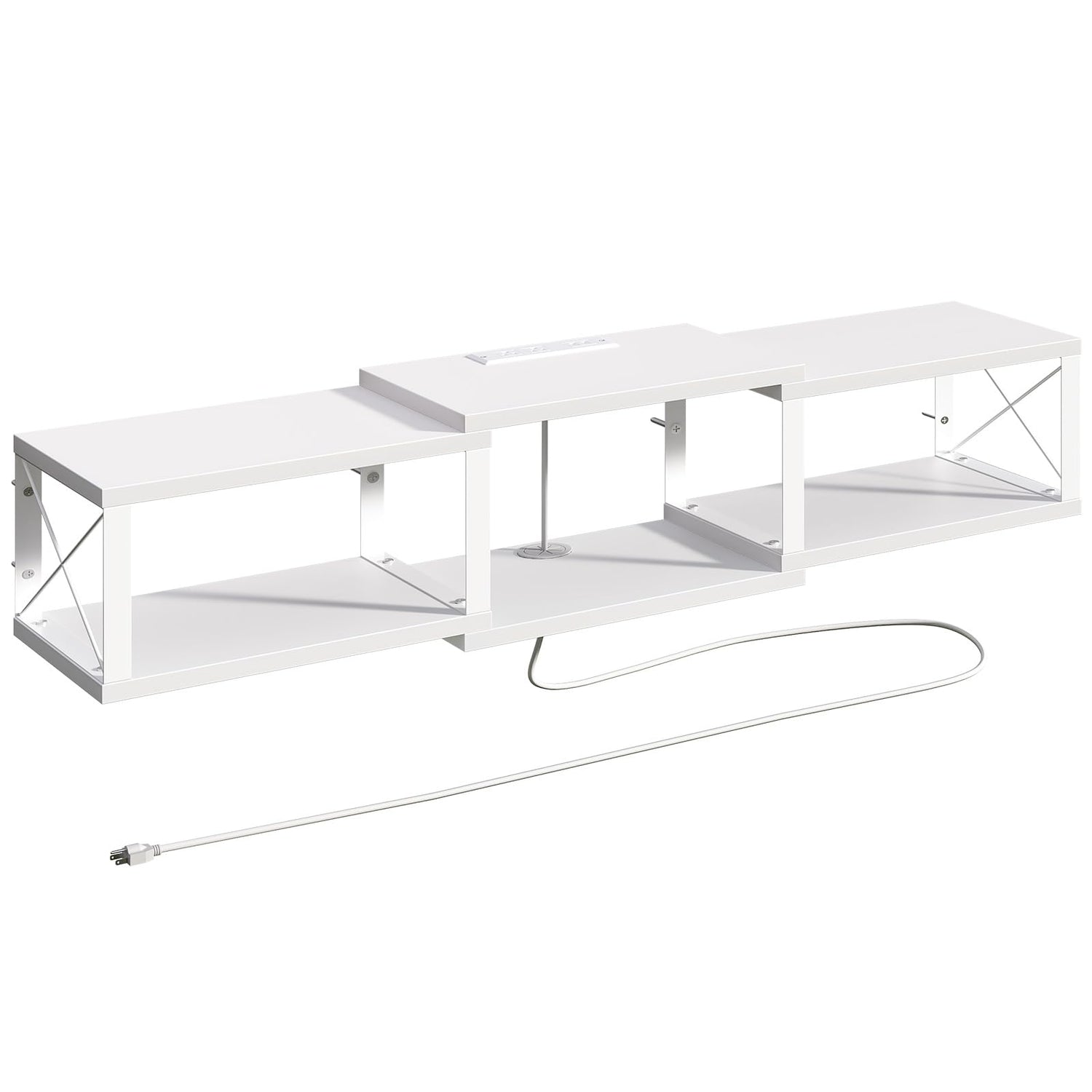 MAHANCRIS Floating TV Stand with Power Outlet, Wall-Mounted Entertainment Console Center with Storage, Floating TV Shelf for Under TV Storage, for Living Room, Bedroom, White TVBW101E01