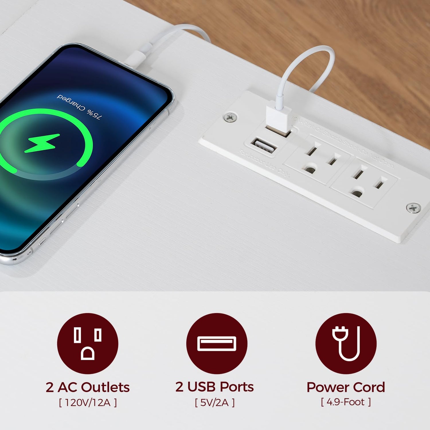 - Built-In Power Solutions: Equipped with two AC outlets, two USB ports and a 59-foot power cord, our TV stand ensures a reliable power supply for your TV, game consoles, CD players, and more. A plastic grommet helps manage cables neatly