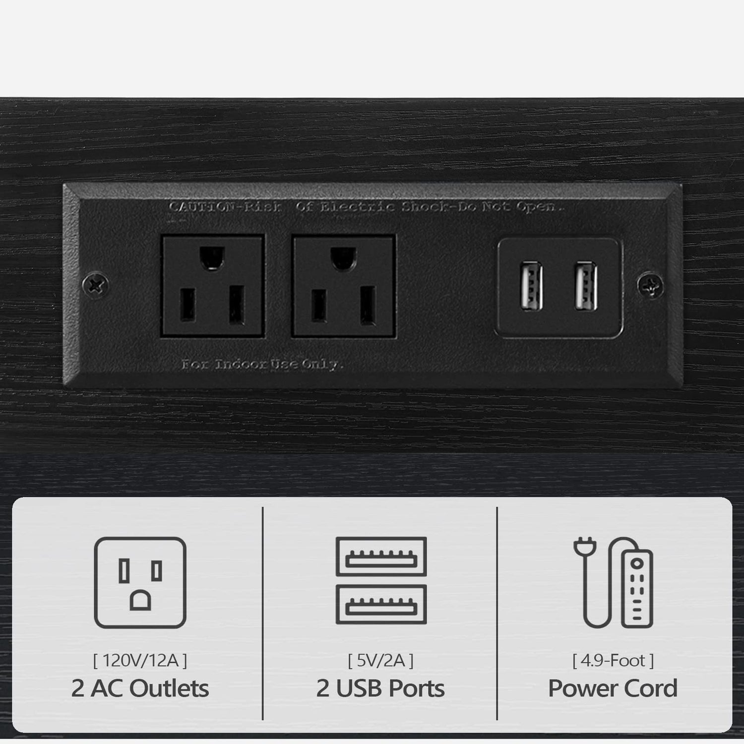 - Power Outlets Design: Engineered wood and thickened metal frame form a strong and stable printer stand. Equipped with a charging station consisting of a 59’’ power cord, 2 USB ports and 2 three-prong outlets, it can easily charge electronic devices such as printers, mobile phones and camera