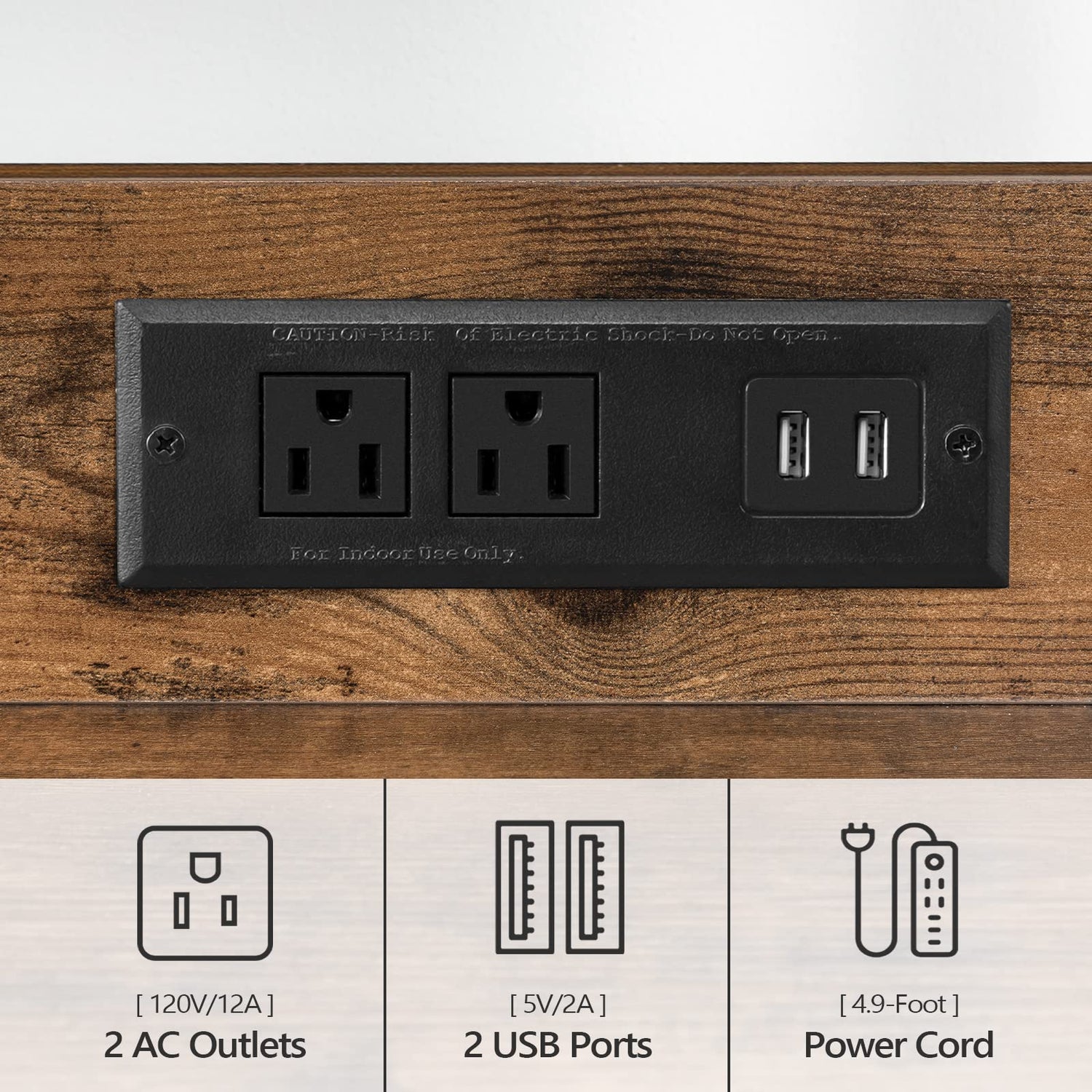 - Power Outlets Design: Engineered wood and thickened metal frame form a strong and stable printer stand . Equipped with a charging station consisting of a 59’’ power cord, 2 USB ports and 2 three-prong outlets, it can easily charge electronic devices such as printers, mobile phones and camera