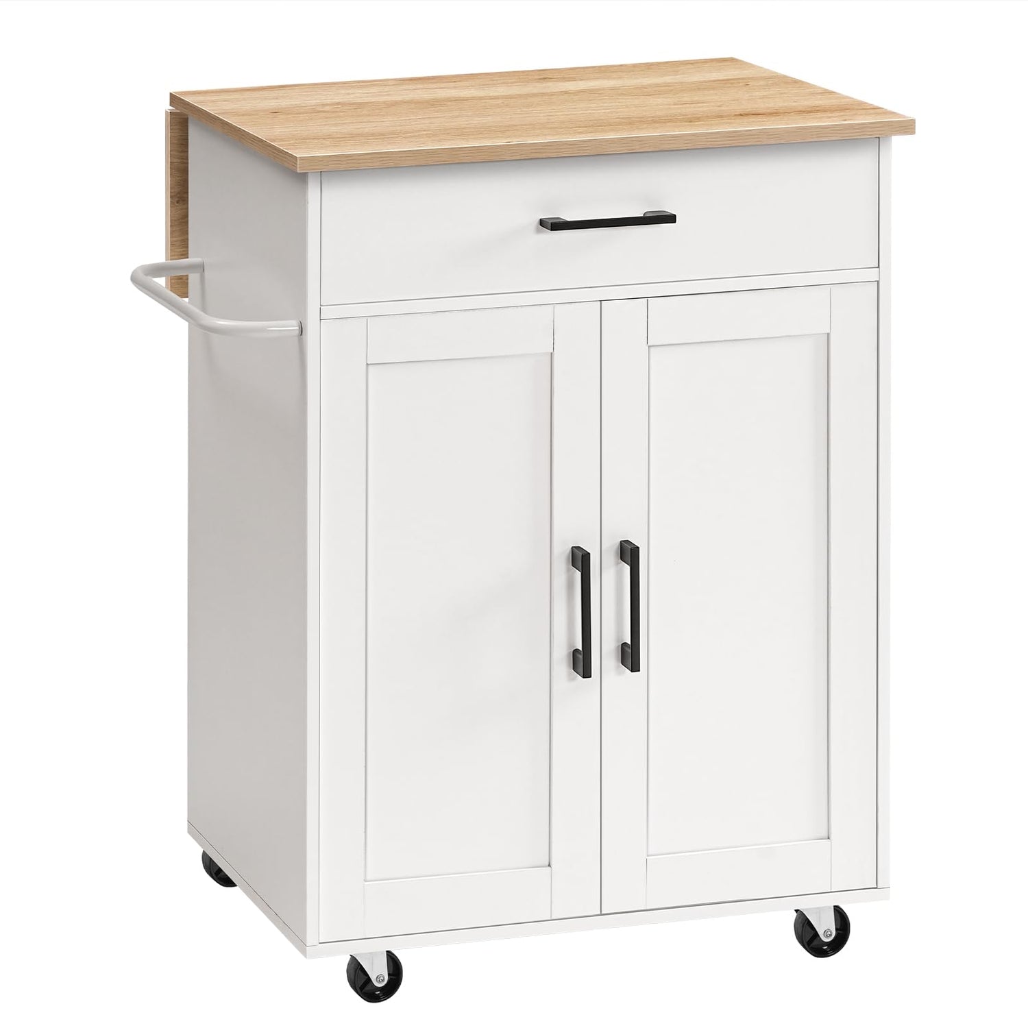 MAHANCRIS Kitchen Island on Wheels with Drop Leaf, Folding Countertop Kitchen Island Cart, Kitchen Island Table with Towel Rack, Drawer, for Kitchen, Dining Room, White and Natural KINW12501
