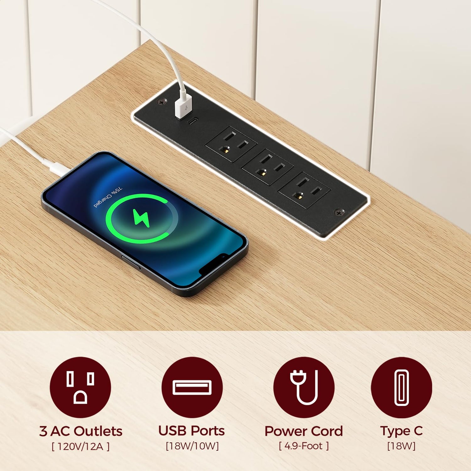 - Charging Hub: The kitchen island cart features a 4.9-foot power cord that includes 3 AC outlets, 1 USB-A and 1 USB-C port, fulfilling the power needs of your coffee machines, microwaves and other kitchen appliances to ensure an efficient cooking experience