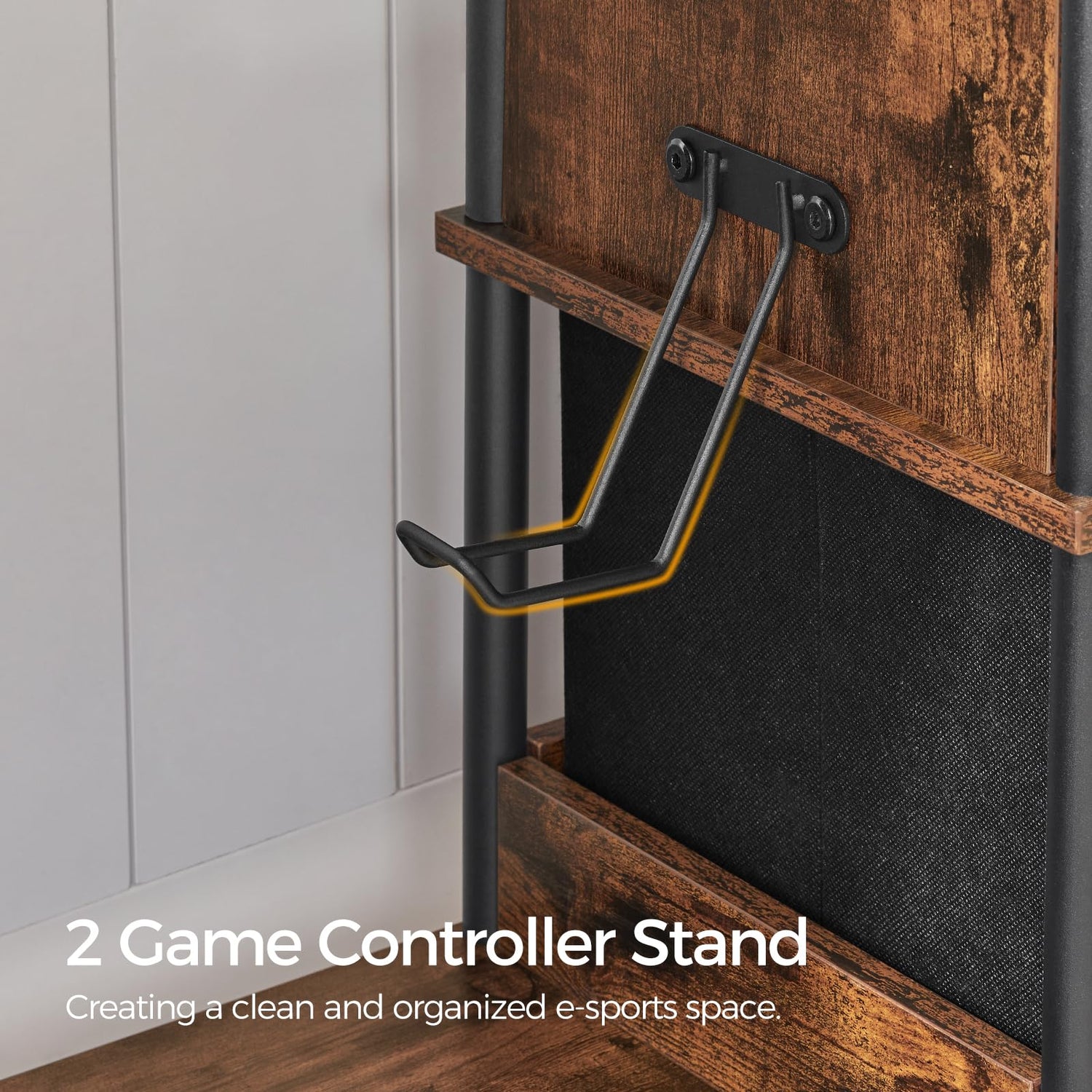 - LED Entertainment Hub: Equipped with 2 game controller holders for easy access, this media console has an LED multi-color light strip that can be controlled with a remote to create an immersive gaming atmosphere for your space