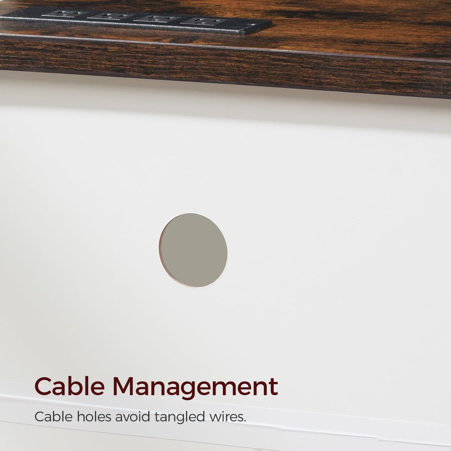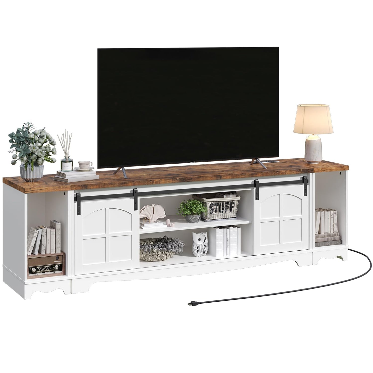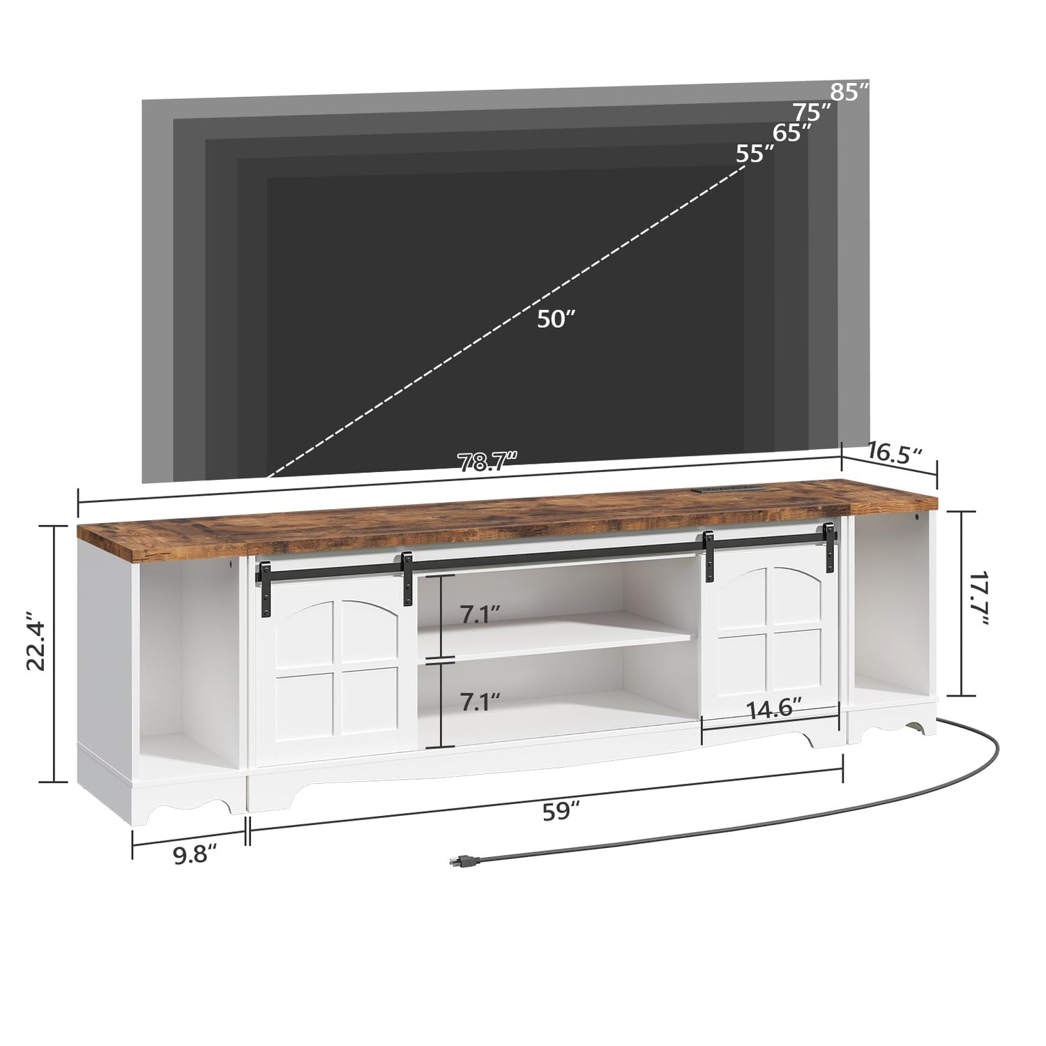 MAHANCRIS Modern Farmhouse 3 in 1 TV Stand for up to 85" TVs, 78'' Entertainment Center with Charging Station and Open Storage, 4 AC Outlets,for Living Room, Bedroom, White and Rustic Brown TVBR20E01