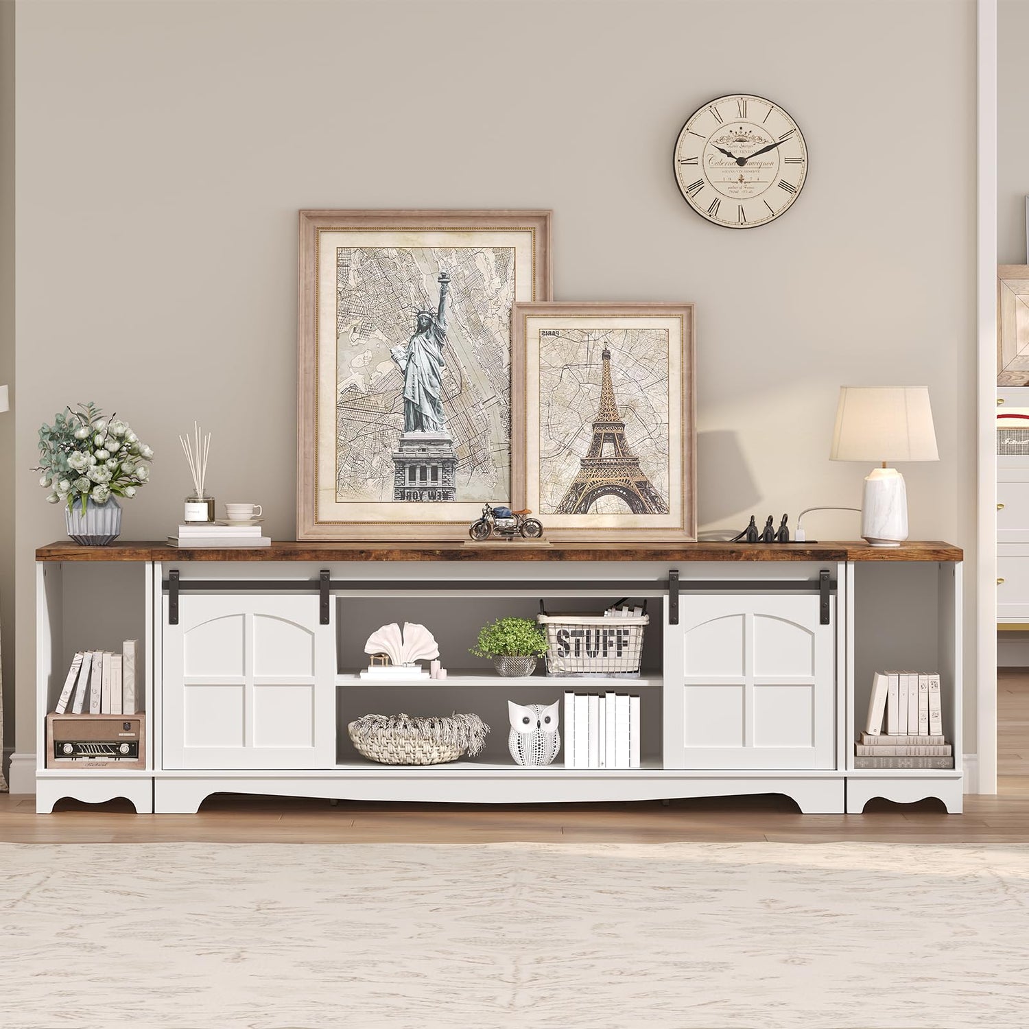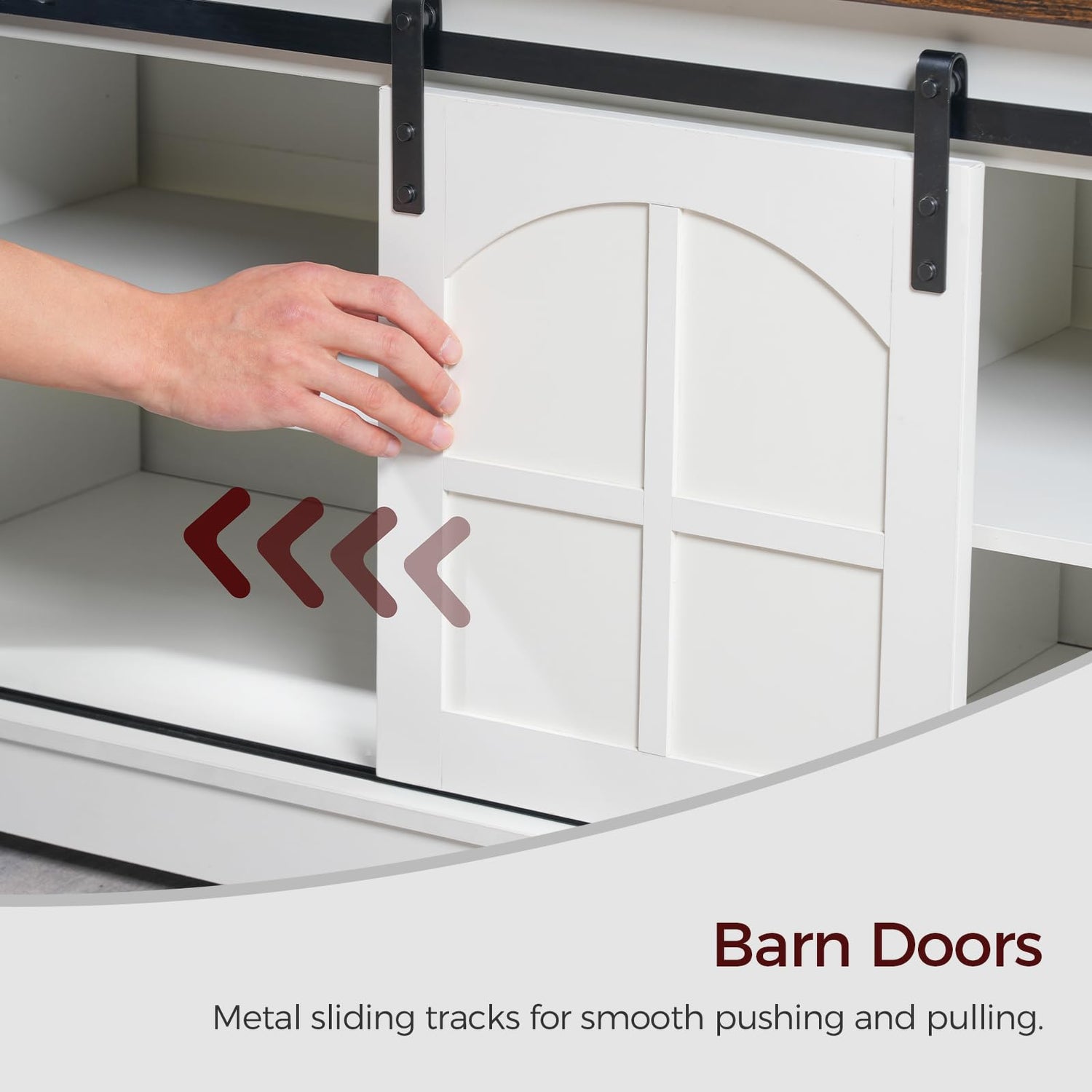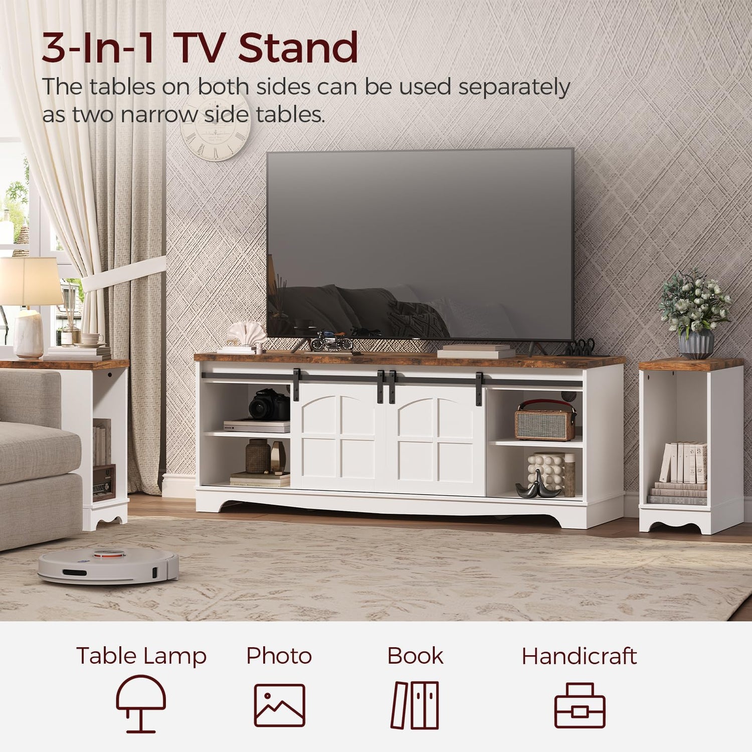 - Flexible Storage Solutions: With 2 sliding barn doors and 2 side cabinets that can be placed flexibly, the TV stand easily holds DVDs, game consoles, and decorations. Two side cabinets can also be used separately as sofa side tables, meeting your diverse needs