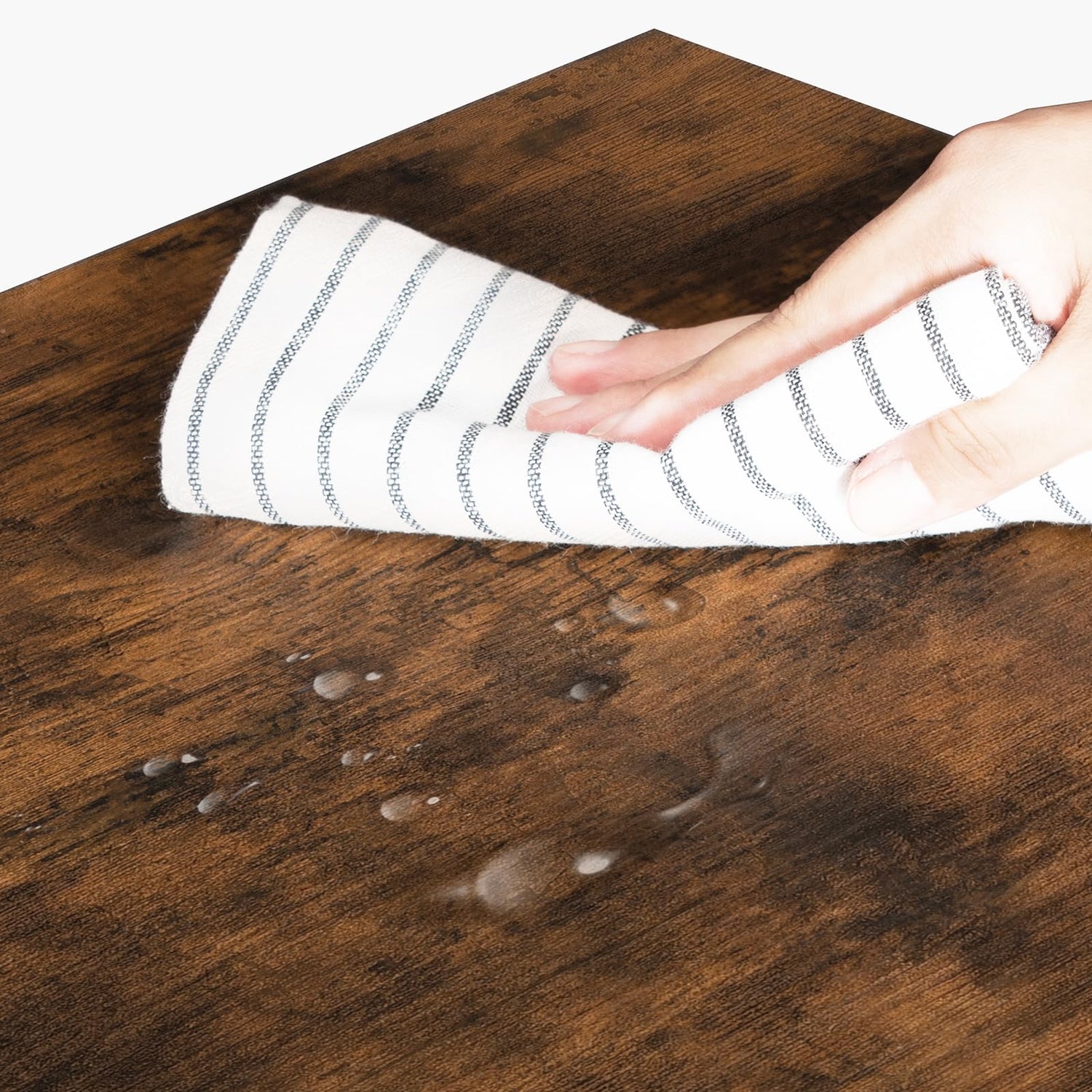 Crafted from quality engineered wood panels paired with a robust metal frame, this table promises superior quality and durability. The rustic brown finish exudes a retro charm, enhancing the elegance of any space. Its adjustable feet ensure stability on uneven surfaces, making it a practical choice for various environments.
