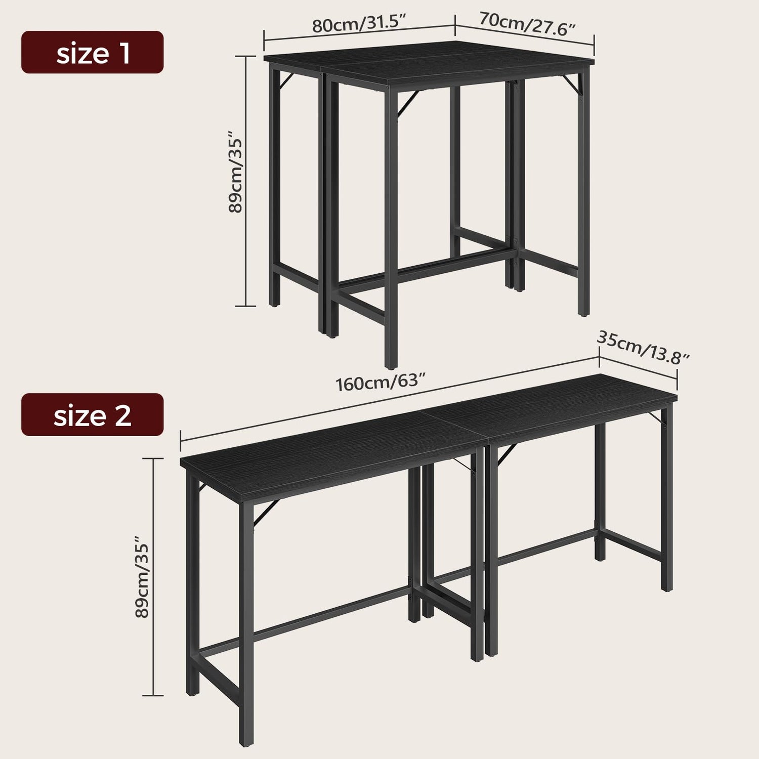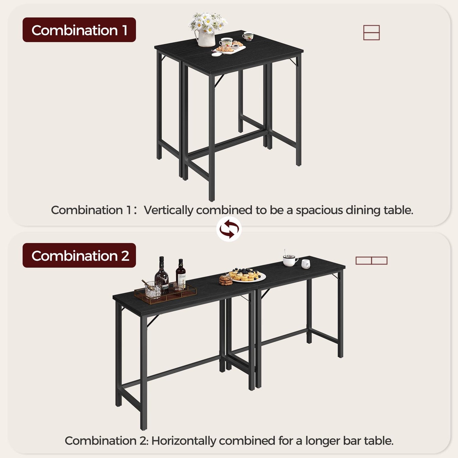- Combinable Bar Table: This bar height table adopts splicing design, You can horizontally combine it to create a long bar table(63"L x 13.8"W x 35"H), or vertically combine it to use as a square dining table(31.5"L x 27.6"W x 35"H). Its retro wooden appearance adds elegance to the space