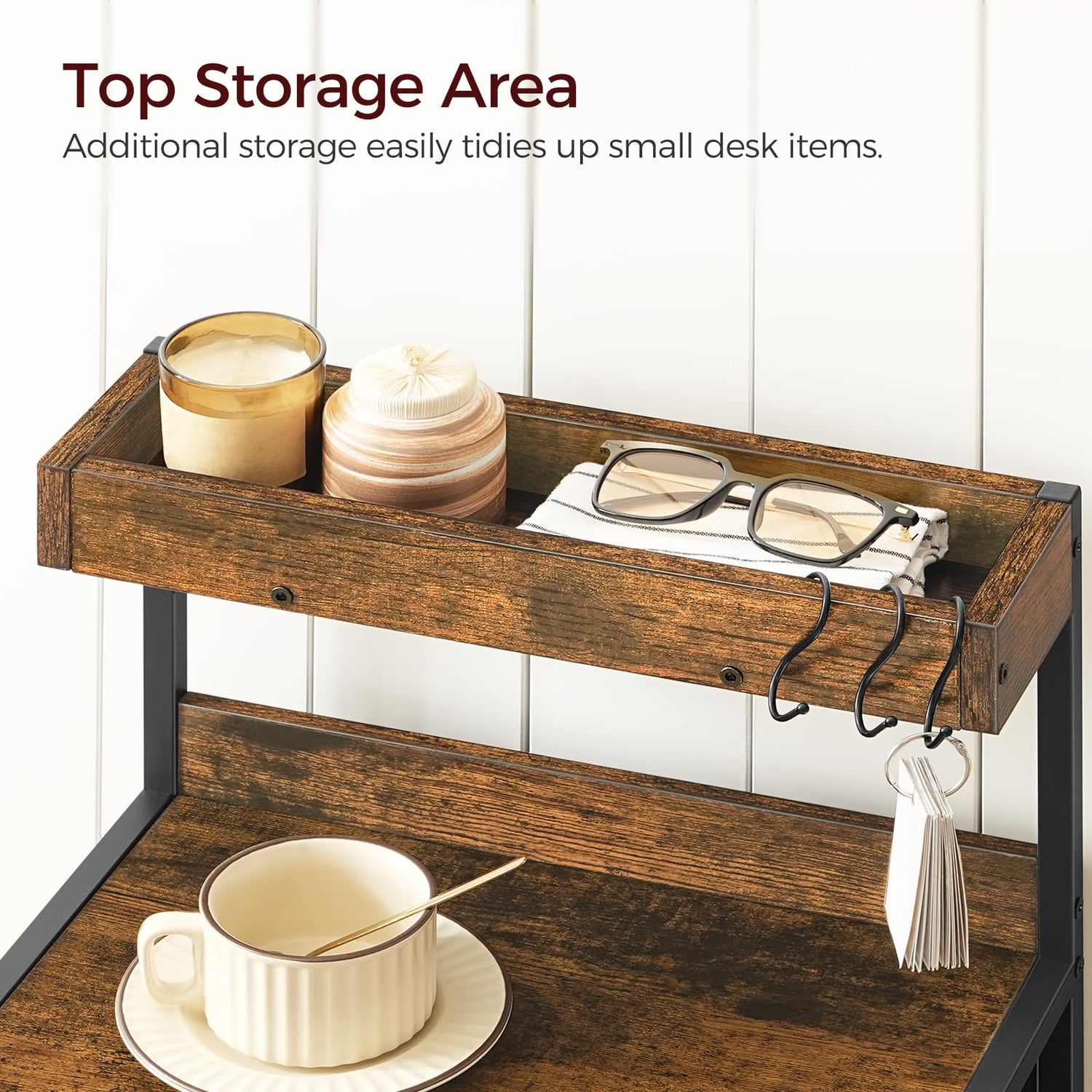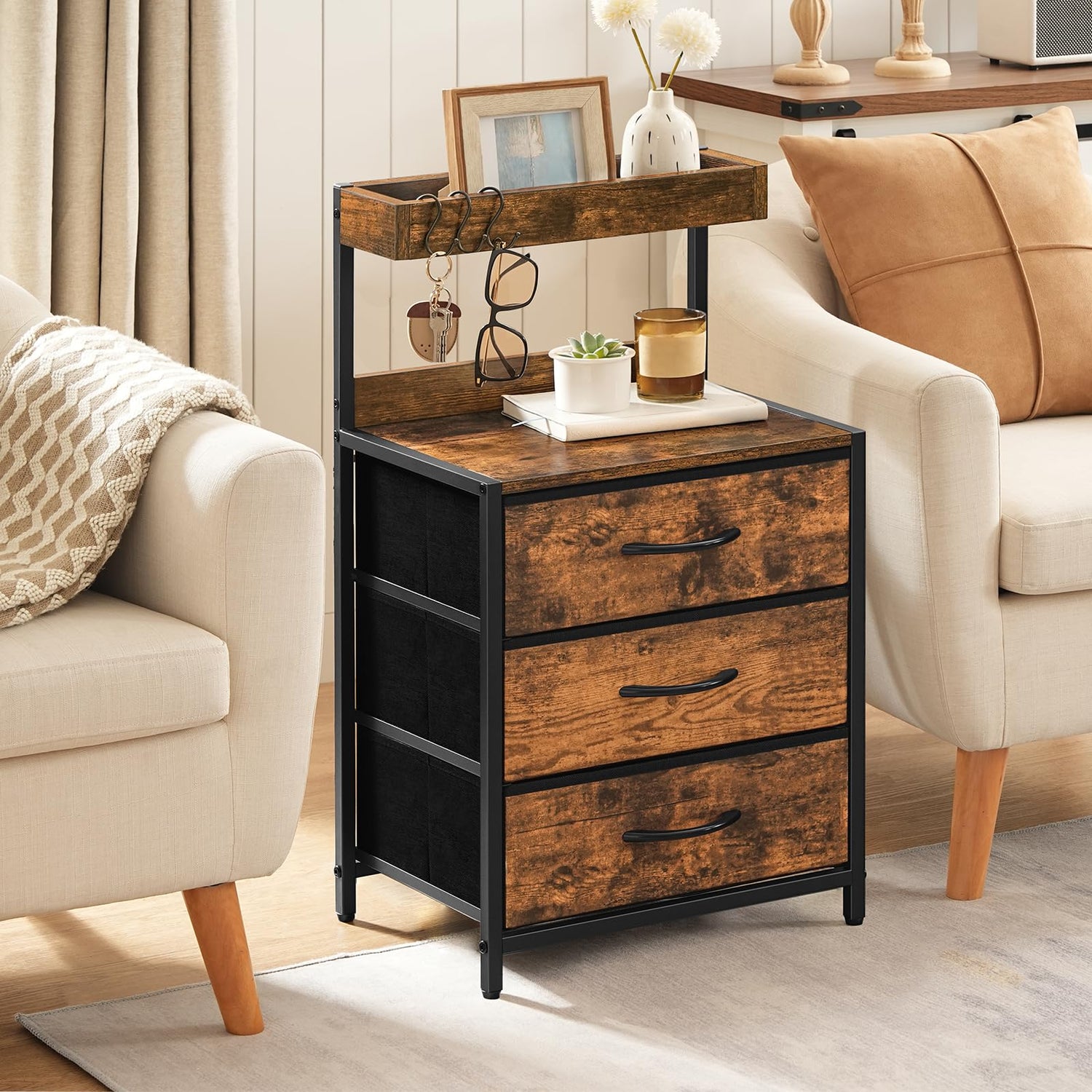 - Diversified Storage: The rustic brown night stand offers 3 spacious non-woven fabric drawers plus a top shelf with hooks for versatile storage. The drawers tidy up personal items, with the top section for items like an alarm clock and a mug, and hooks for accessories