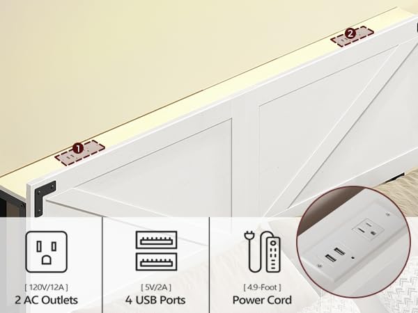 - Double Power Strips: The headboard features a built-in power strip on both sides, each with 1 standard outlet, 2 USB ports, and an indicator light, allowing you to easily charge your phone, tablet, lamp, and other e-devices from any side of the bed