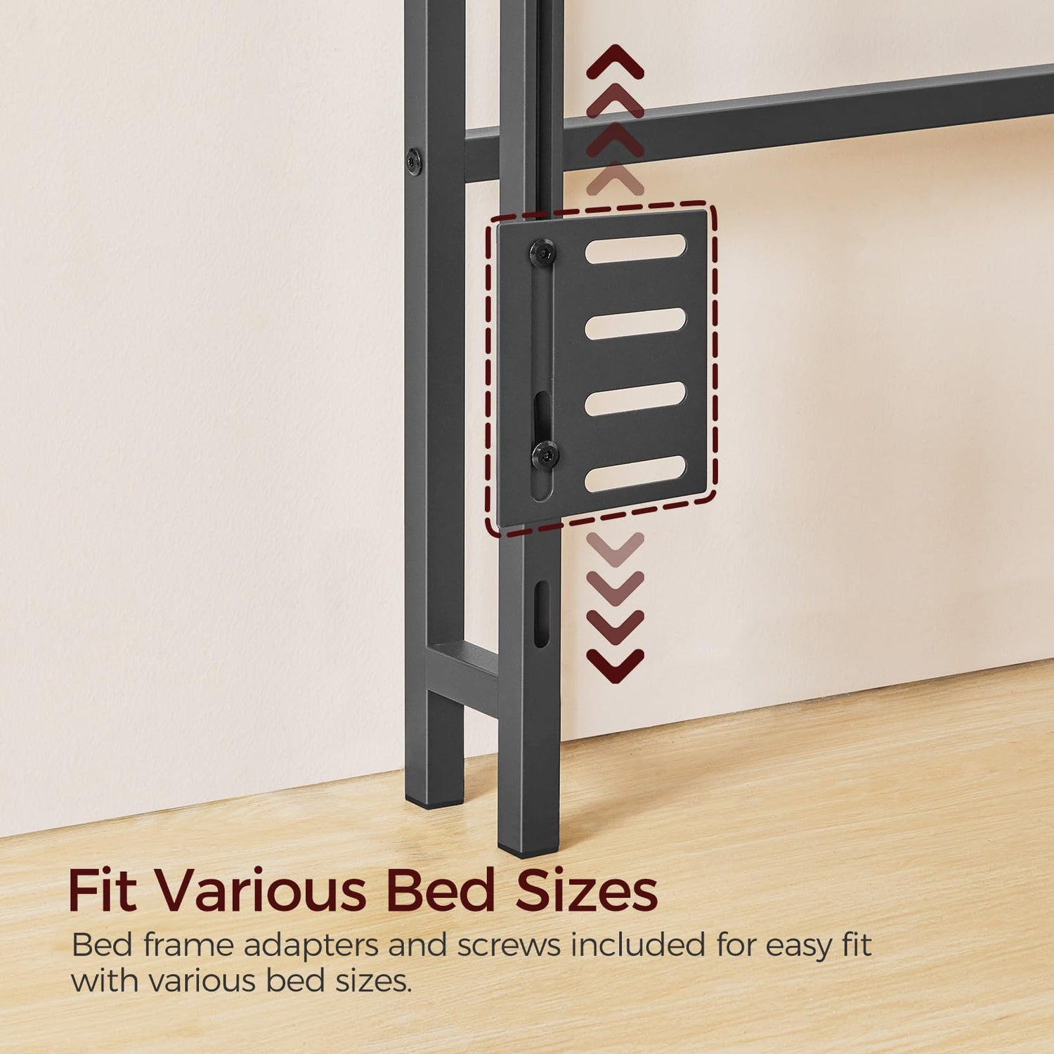- Sturdy and Thoughtful Build: Made of quality particleboard and a robust metal frame, the headboard is built to last. The top shelf offers a convenient spot for phones, glasses, clocks, books, and other nighttime items, secured by a raised barrier