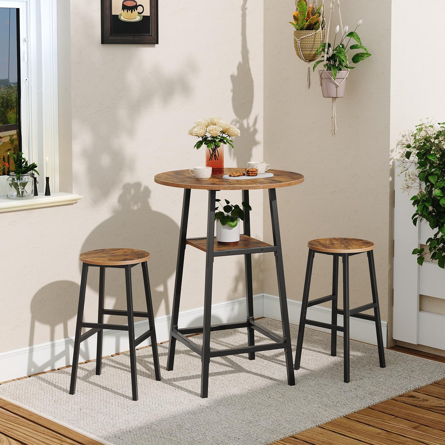 MAHANCRIS Round Bar Table, 37.4" High Pub Top Table with Footrest, 2-Tier Counter Height Cocktail Tables with Storage, Bistro Table for Small Spaces, Easy to Assemble, Rustic Brown BTHR12501N1