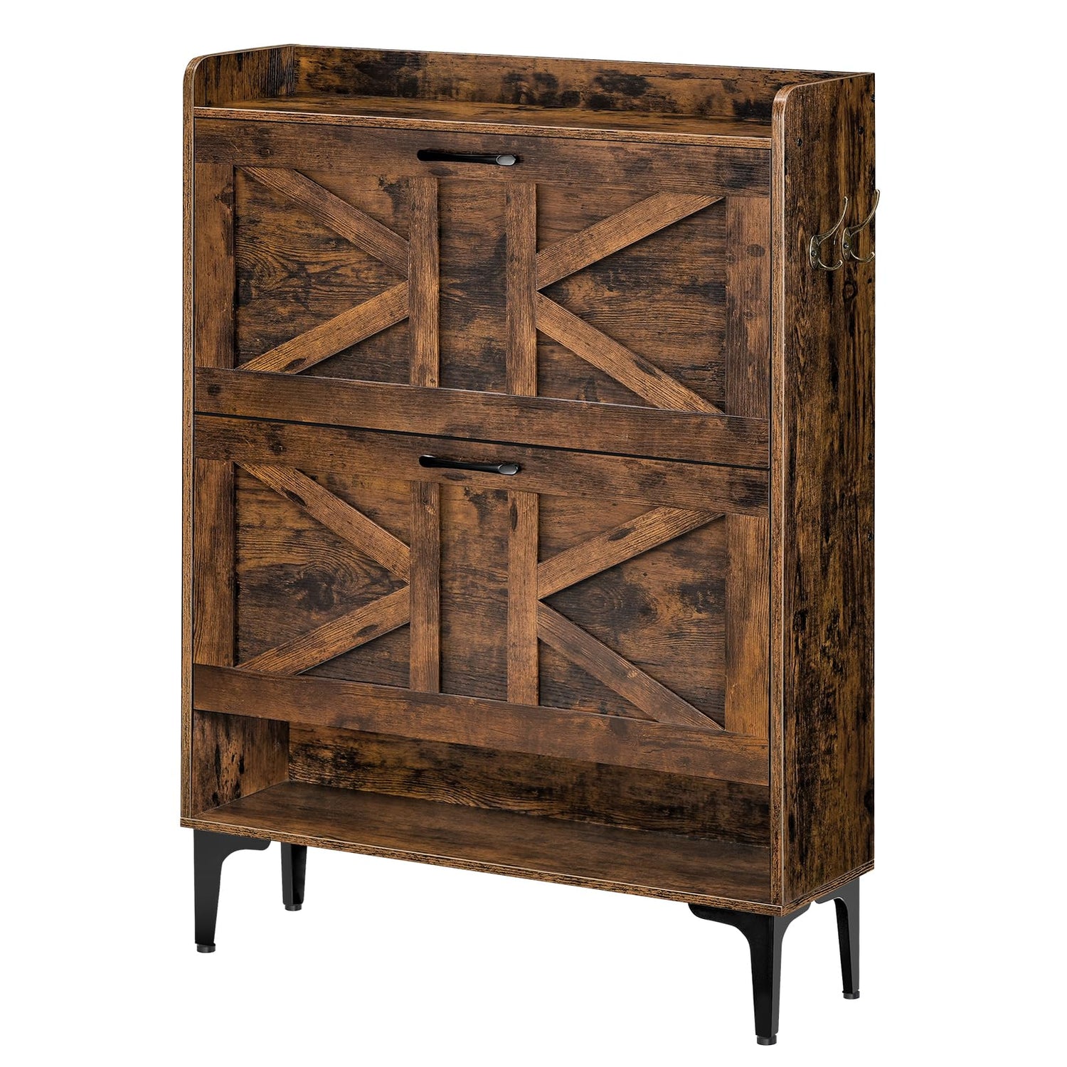 MAHANCRIS Shoe Storage Cabinet, Shoe Organizer with 2 Flip Drawers, Hidden Shoe Storage for Entryway, Freestanding Organizer with Open Storages, Rustic Brown SHHR9401N1