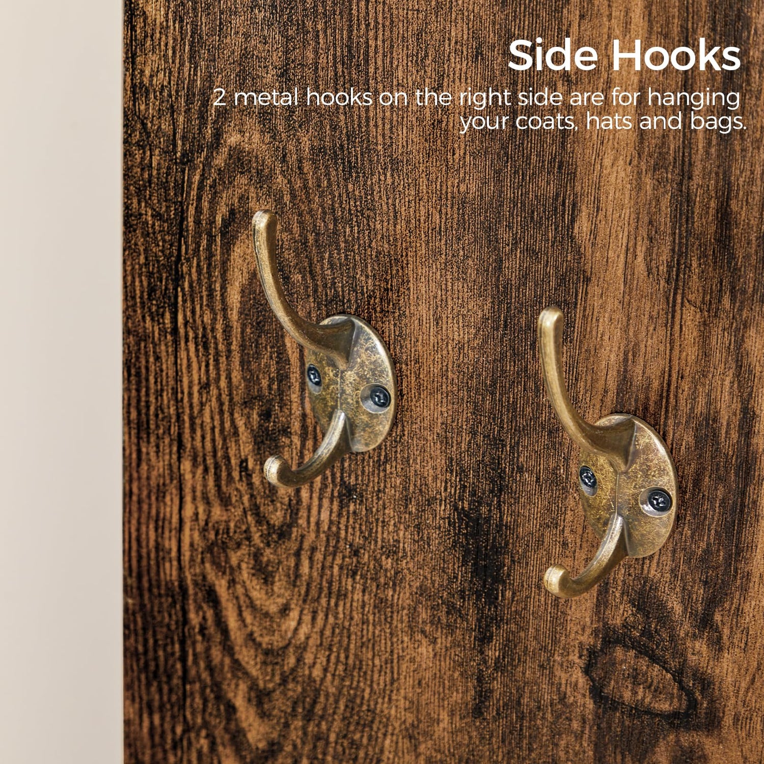 - More Details: There are 2 metal hooks on the right side of the shoe cabinet with drawer, which is convenient for storing other items when changing shoes. The anti-tip device ensures stability, and the open space at the bottom easily accommodates the sweeping robot for easy cleaning