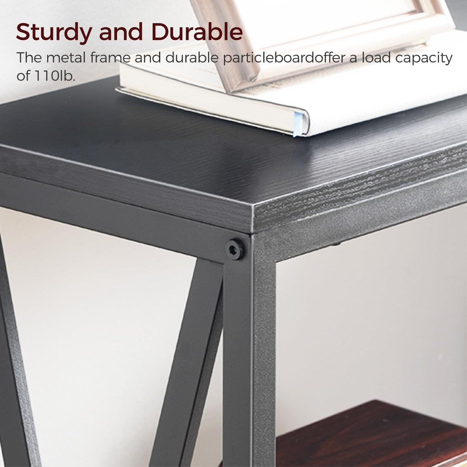 - Sturdy and Stable: MAHANCRIS sofa table is made of high-quality engineered wood, which is sturdy and durable. The double X metal frames and adjustable feet make the side table increase the stability. It will not shake during use and can prevent the floor from scratching (load-bearing of the top: 40 kg/88 lb, each shelf can bear up to: 20 kg/44 lb)