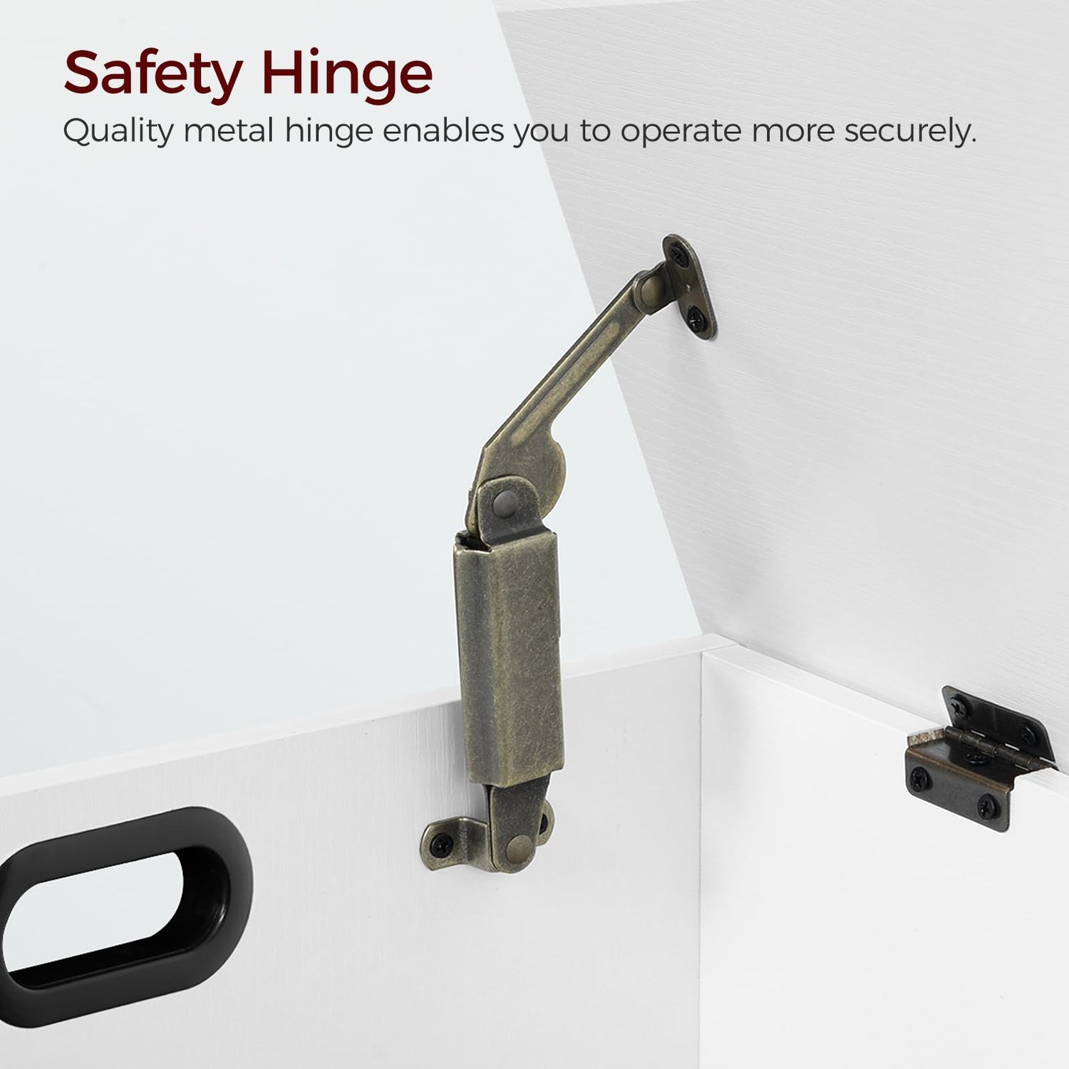 - Safe and Convenient: The safety hinge connecting the top and side panels can be opened and closed slowly, making it convenient to access the items without worry of sudden closing. 2 hollowed side handles make it easy to move this storage bench anytime