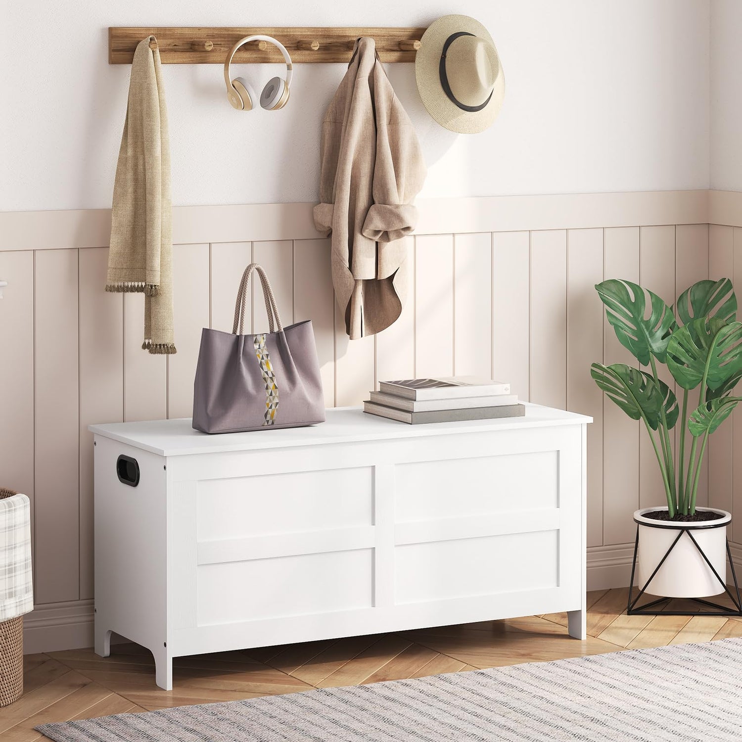 MAHANCRIS Storage Chest, 39.4”L Large Toy Chest, Entryway Storage Trunk, Toy Storage Organizer, Storage Bench with Safety Hinge, Entrance Bench for Living Room, Entrance, Bedroom, White SCWT48301
