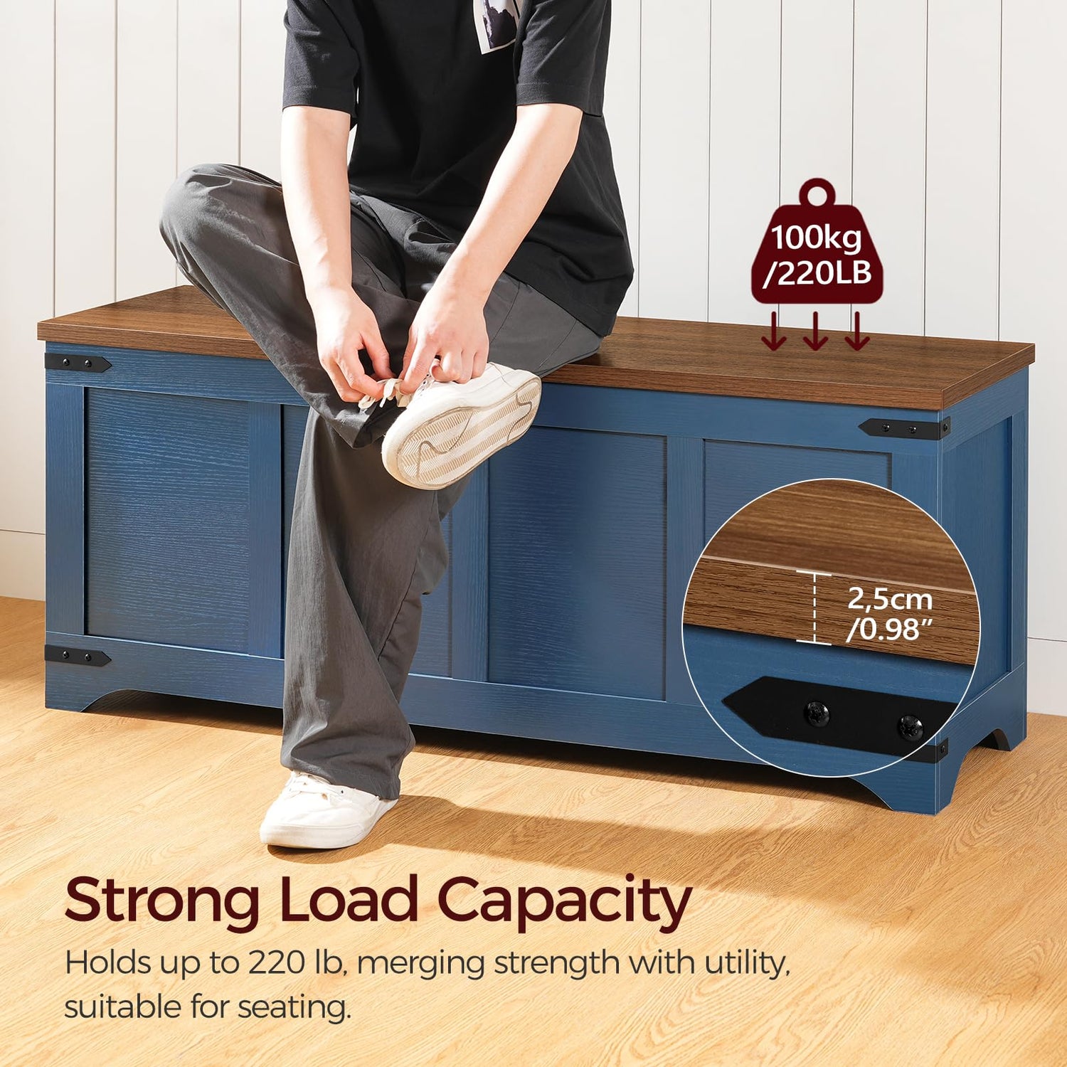 MAHANCRIS Storage Chest, 47.2" Storage Trunk with 2 Safety Hinges, Wooden Toy Chest, Entryway Shoe Bench, Large Toy Box for Kids Room, Bedroom, Living Room, Blue SCLZ4901