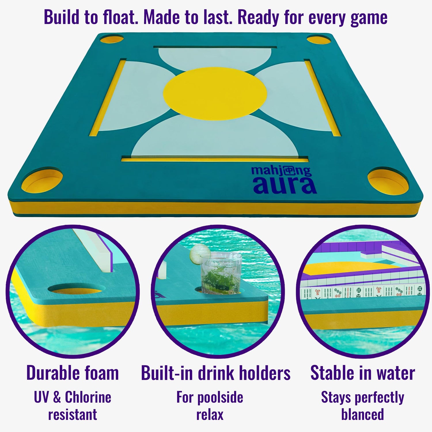 - 【Versatile Floating Mahjong Table】 Measuring 32 inches, Perfect for poolside fun, enjoy Mahjong, dominoes, rummy, Scrabble, and more on our large, versatile floating table designed to fit all Mahjong tile sizes!