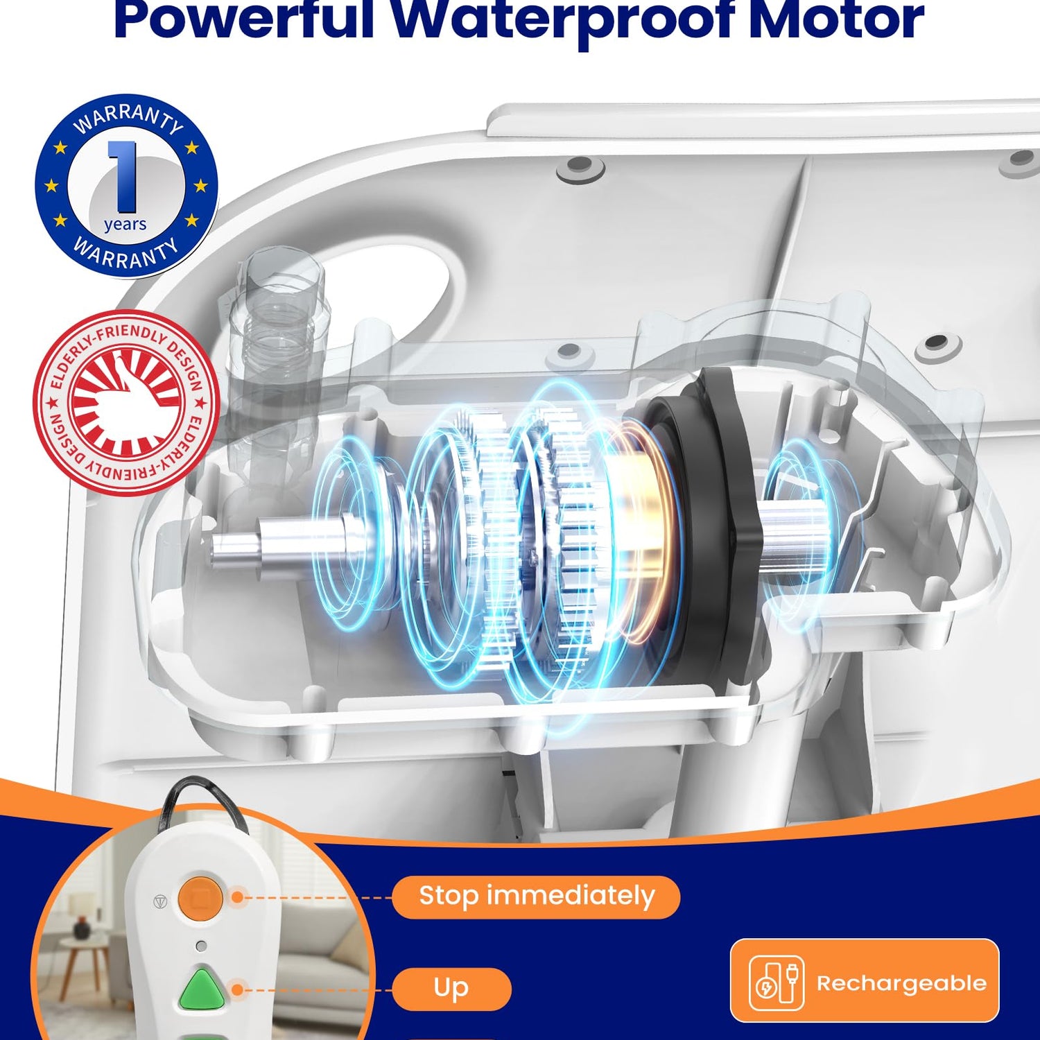 • [Fully Waterproof] - We adopt the IPX8 waterproof standard, the chair lift can be safely submerged.Our chair lift can work normally even in the bathtub, and there are 6 suction cups to improve the stability of the electric chair lift.