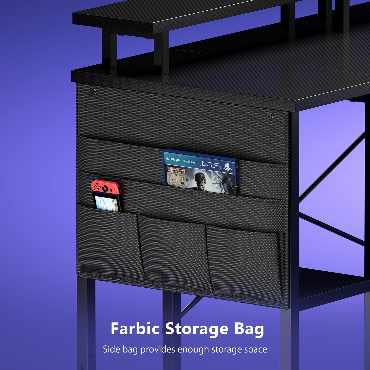 Maihail 51 inch L Shaped Desk with LED Lights & Power Outlets, Reversible Gaming Desk with Shelves & Monitor Stand, Computer Desk with Storage Side Bag,Corner Desk for for Bedroom Gaming Room, Black.