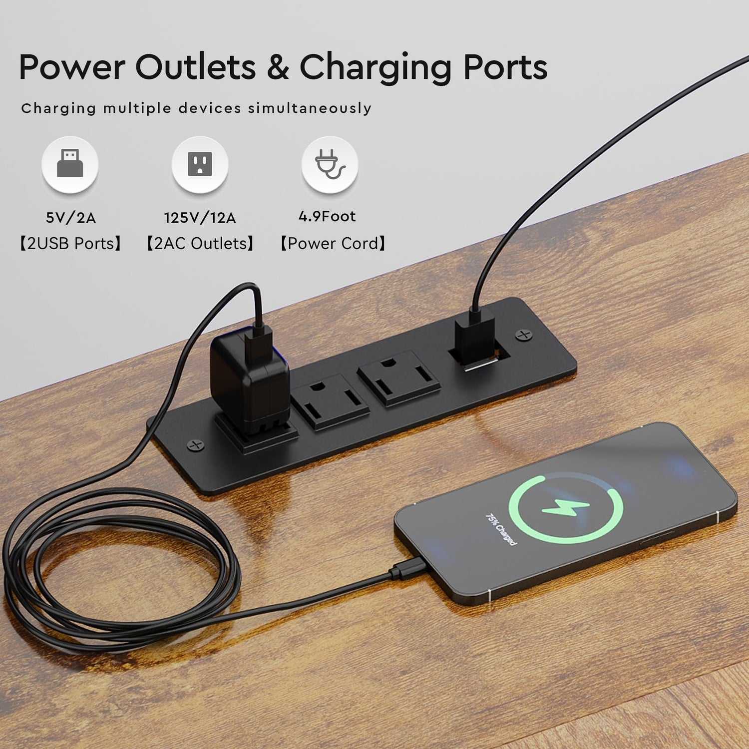 - 【Convenient Power Supply】Stay powered up with 2 AC outlets and 2 USB ports, letting you charge phones, gaming gear, and Bluetooth devices seamlessly. The 4.9ft power cord ensures flexible desk placement.