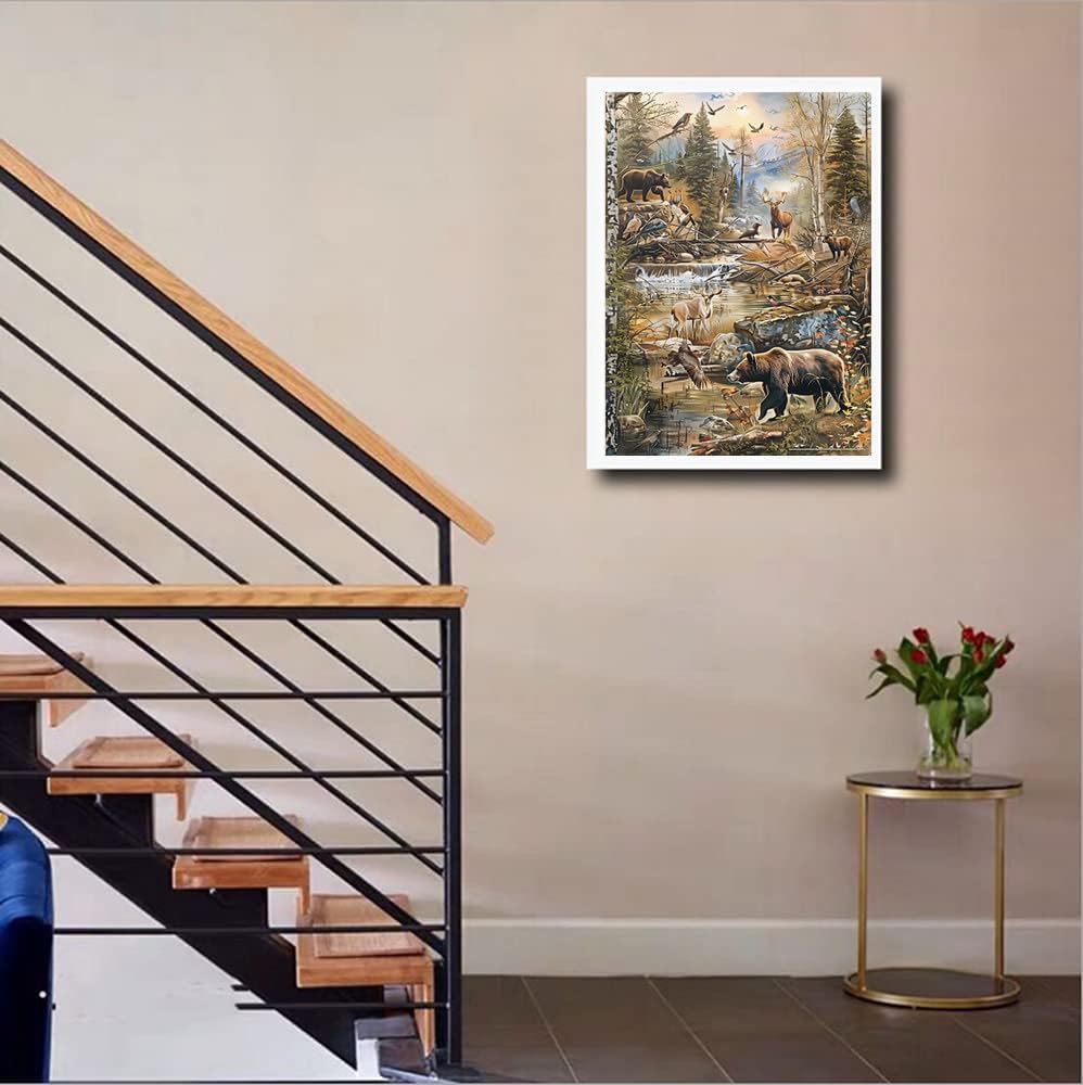 MaiYiYi Wild Forest Diamond Painting by Numbers, 5D Full Round Drill Black Bear Diamond Painting Cross Stitch Kit, Elk Crystal Diamond Painting Set for Adult Beginners Wall Art Decor (35X45 CM)