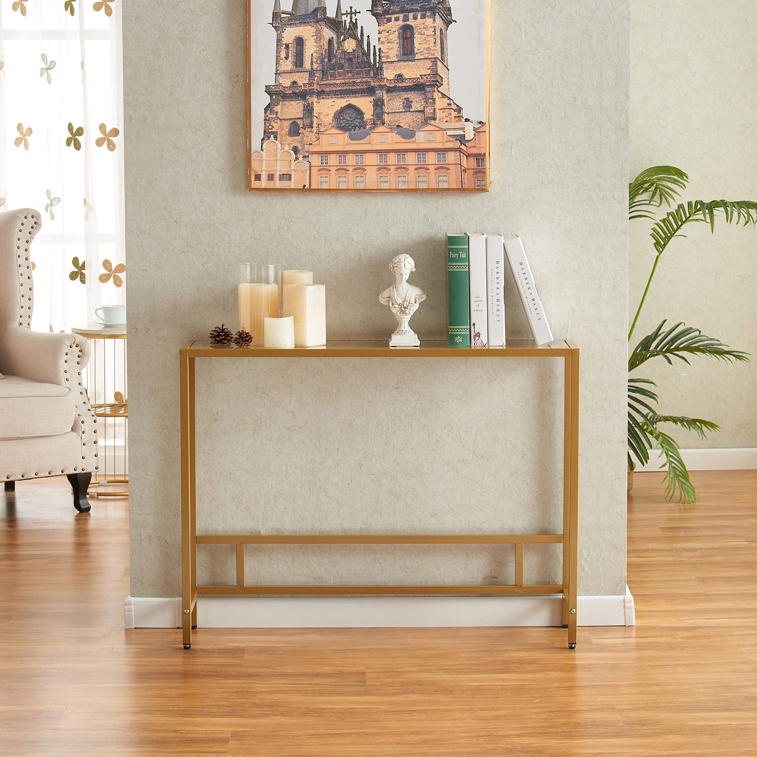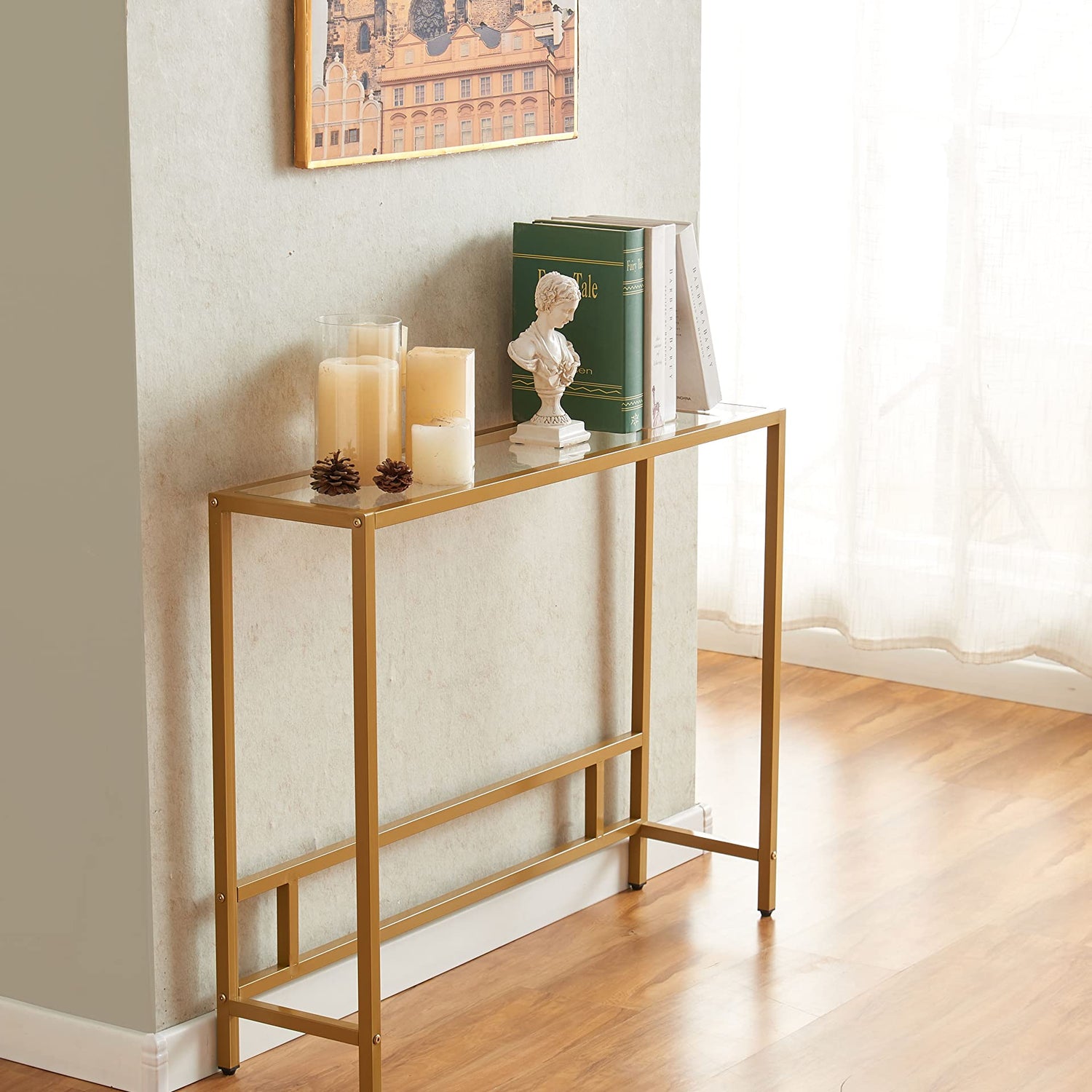 MAJARO Small Modern Console Table for Entryway, Tempered Glass with Golden Metal Frame Sofa Table for Living Room, Hallway, Office