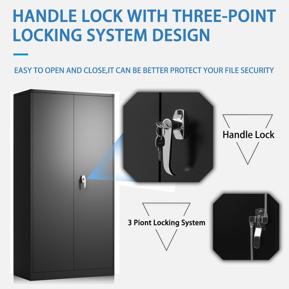 - 【Security Design】The metal cabinet with furniture lock can be locked through the security upgraded three-point interlocking system and garage storage organization system hardware, which can effectively protect your important items and documents. Suitable for storing data in the office, home and school.