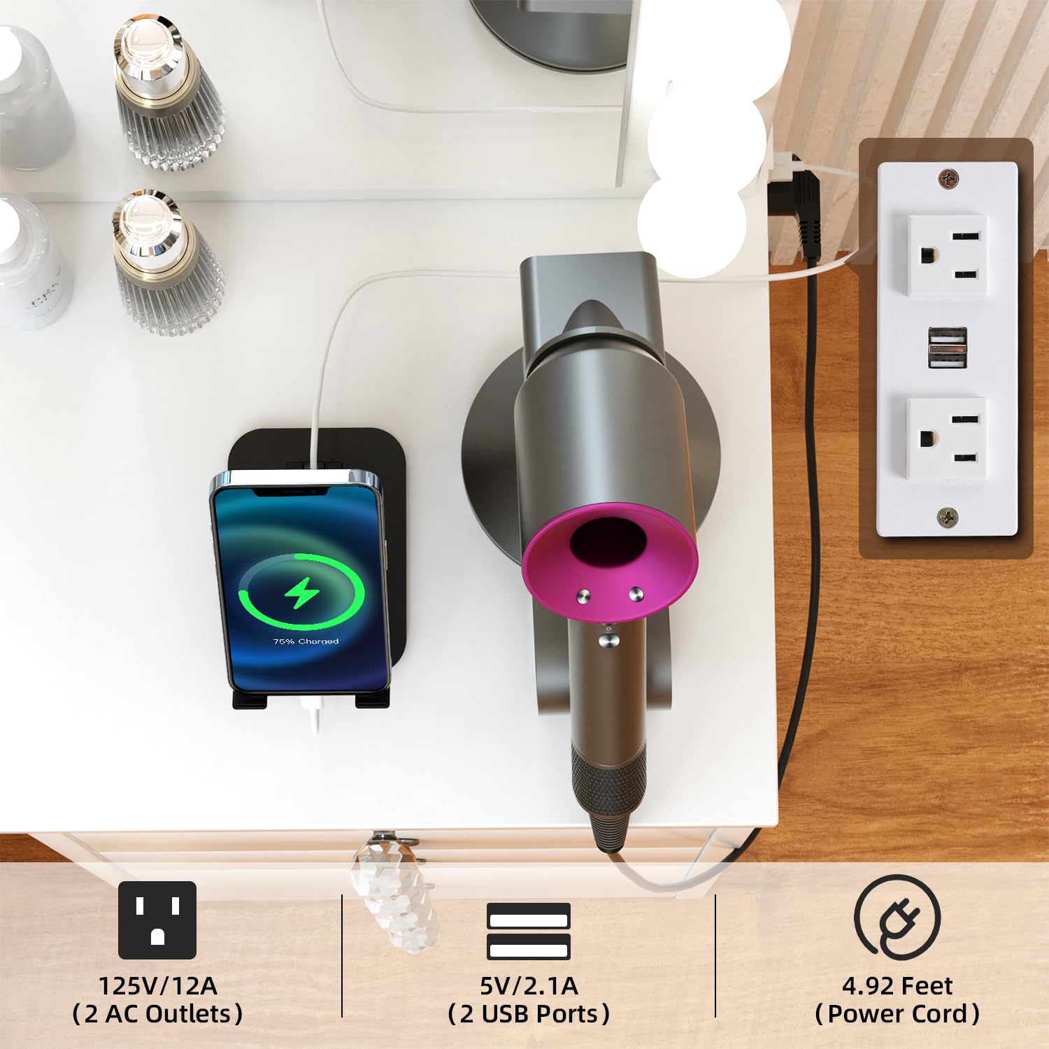 - 💄【BUILT-IN POWER STRIP】This make up vanity adds an upgraded design with 2 standard plug sockets and 2 USB ports, more convenient for your beauty device and phone charging. You can sit in front of the mirror and easily use your curling iron or hair dryer.