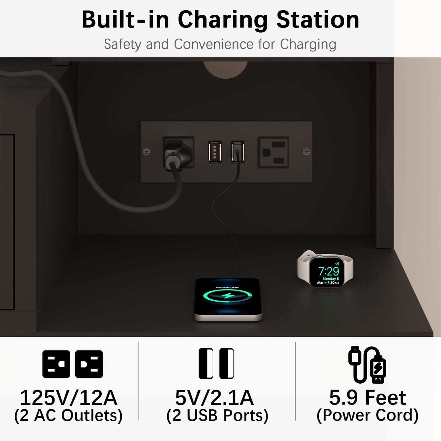 - 【Power Strip with USB Ports & Outlets】This large makeup table features a charging station, includes 2 standard plug sockets and 2 USB ports, which can be more convenient to connect hair dryer, curling iron in front of the mirror, and charge your phone or other mobile devices during makeup,