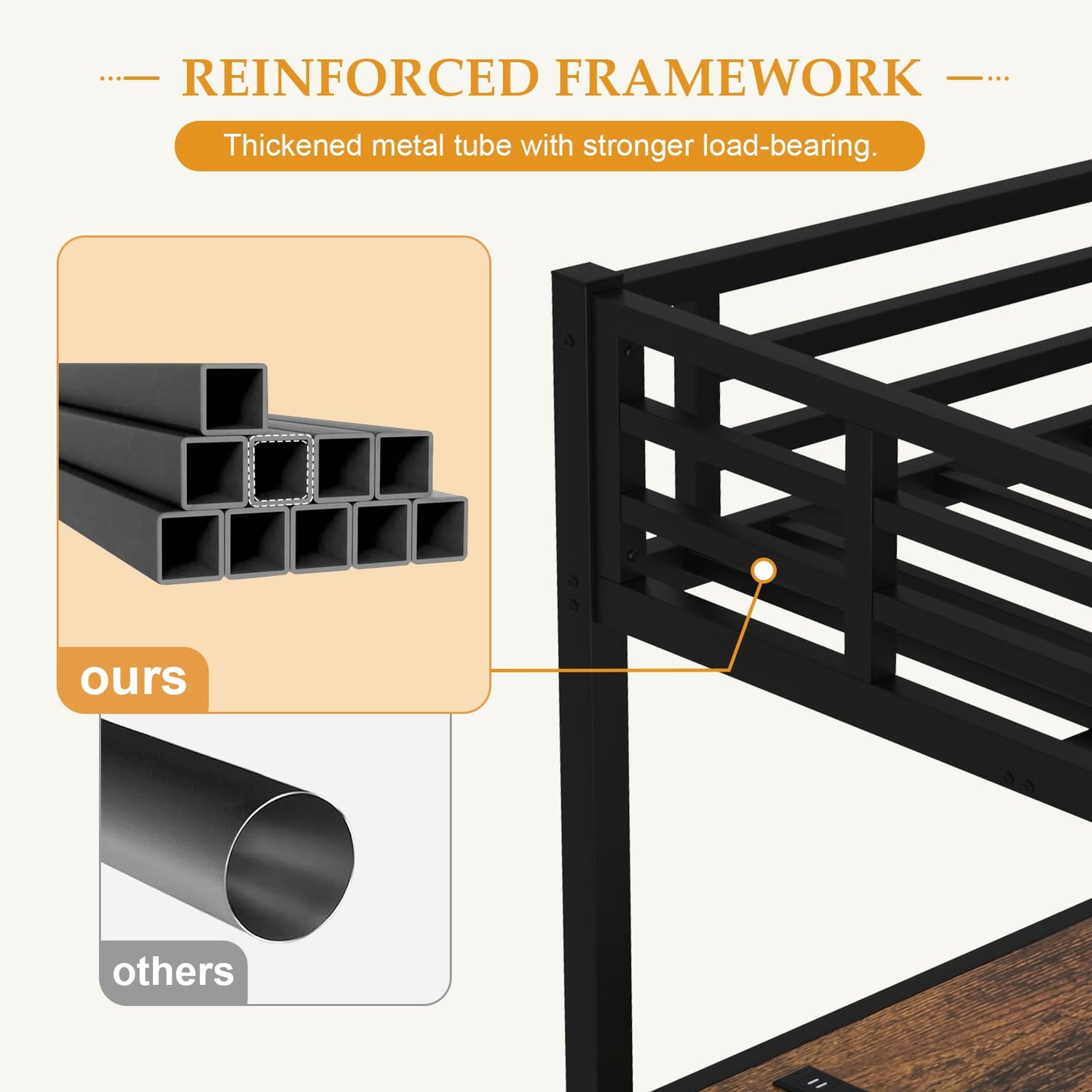 MAKIAAP Twin XL Size Metal Loft Bed with Desk & Ladder, LED Lights & Charging Station, Sturdy Noise-Free Frame for Kids, Teens & Adults, 350LBS, Space-Saving Design (Black, Twin XL)