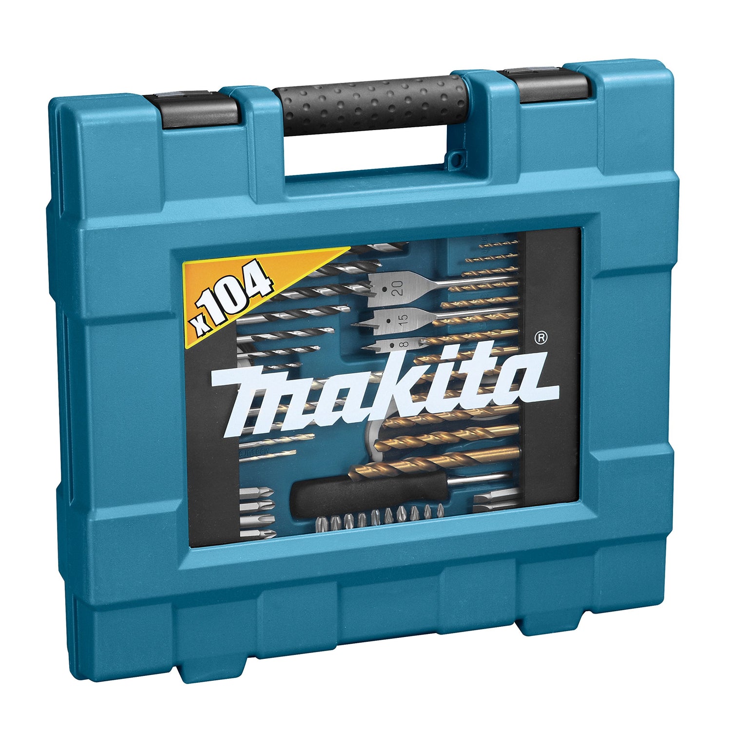 Details: Get one convenient set of bits and sockets for drilling, driving and fastening in one convenient carrying case with the Makita 104-Piece metric bit and hand tool set (D-37150). the set includes bits for drilling into metal, wood and masonry materials, nut drivers, and hand tools for a range of fastening, trimming and measurement tasks. Fastening applications are covered with an assortment of Phillips, Pozidriv, Torx, slotted and hex insert bits. The set also includes (14) titanium nitride coated high speed steel (hss-tin) metal and wood drilling bits, Spade bits, brad point wood drill bits, and masonry hammer drill bits. The kit also includes ¼” hex Nutdrivers, ¼” hex quick-change big holder, and a ¼” hex magnetic bit holder. For added convenience, the kit includes a torpedo level, tape measure, snap off blade utility knife, and screwdriver.