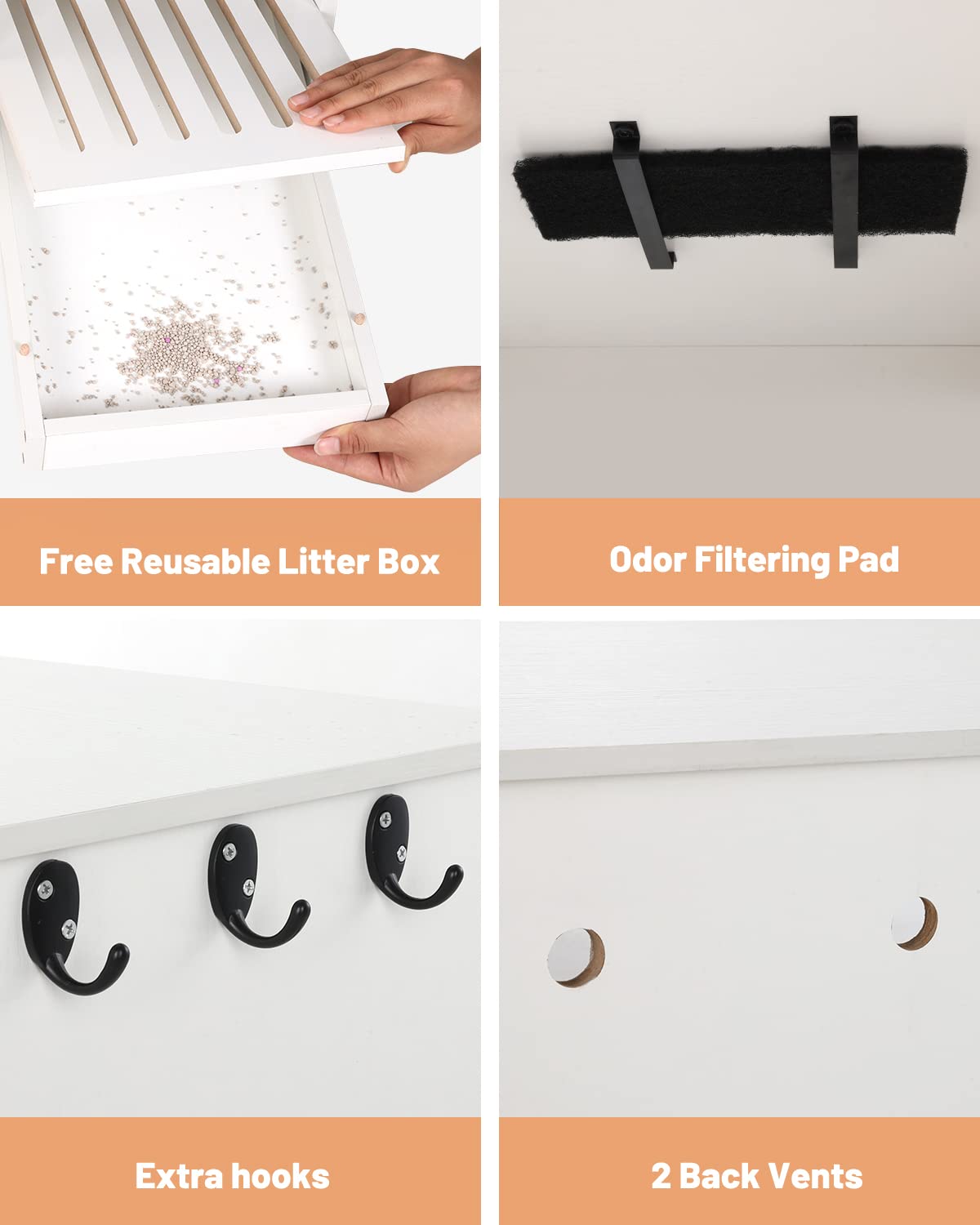 - 【Multifunctional Cat box Furniture】-The litter box shell helps to hide the unpleasant smell of the litter box, it looks like ordinary furniture and can be used as a coffee table, bedside table, side table, and blends in with your home decor. The hook design on the side makes it easy to store cat-related items.