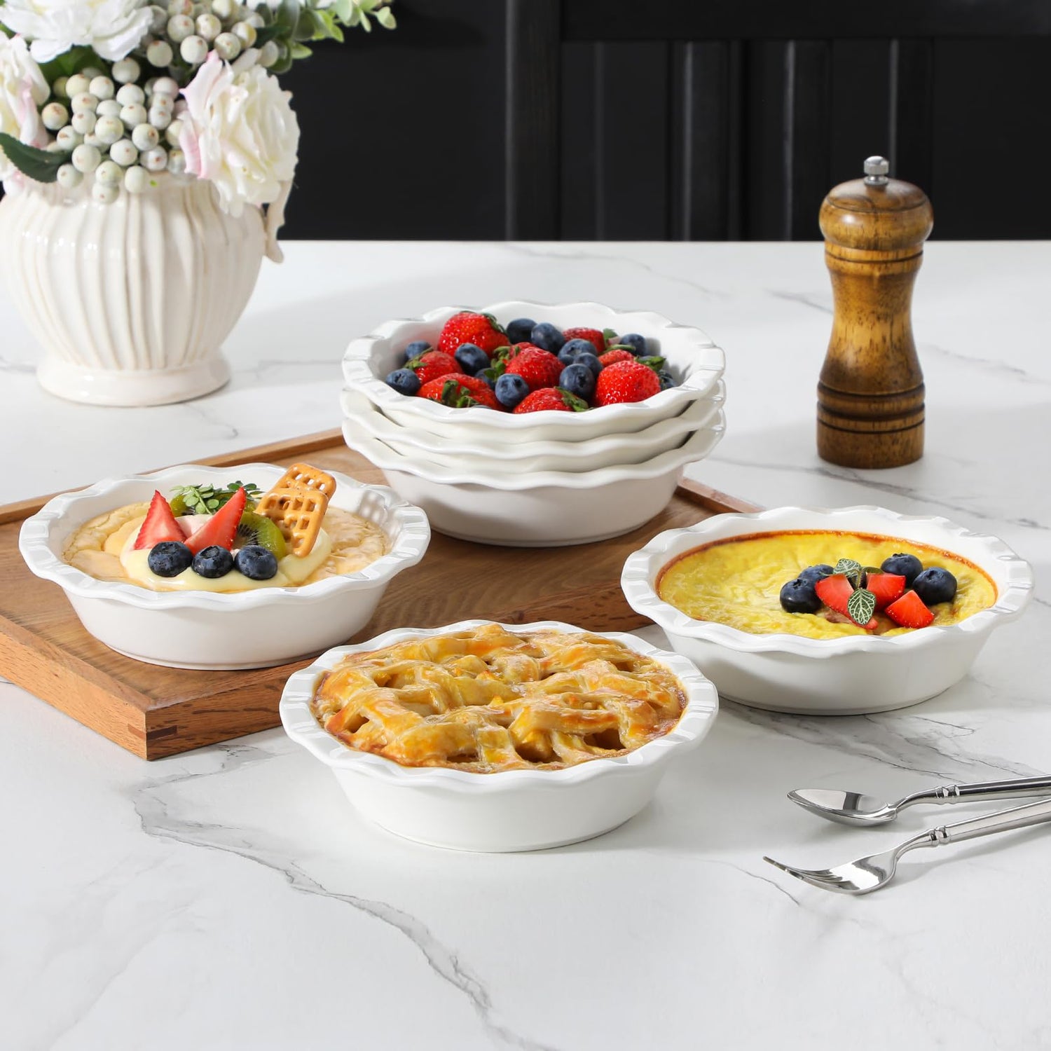 - 【 Versatile & Multi-Functional】- Porcelain pie pans for baking are oven, microwave, and freezer safe, providing ultimate versatility. Mini pie dish plates are great for quiches, tarts, casserole, other baking goods, even side dishes. You can bake, reheat, and store your creations all in one dish, perfect for both sweet and savory dishes.