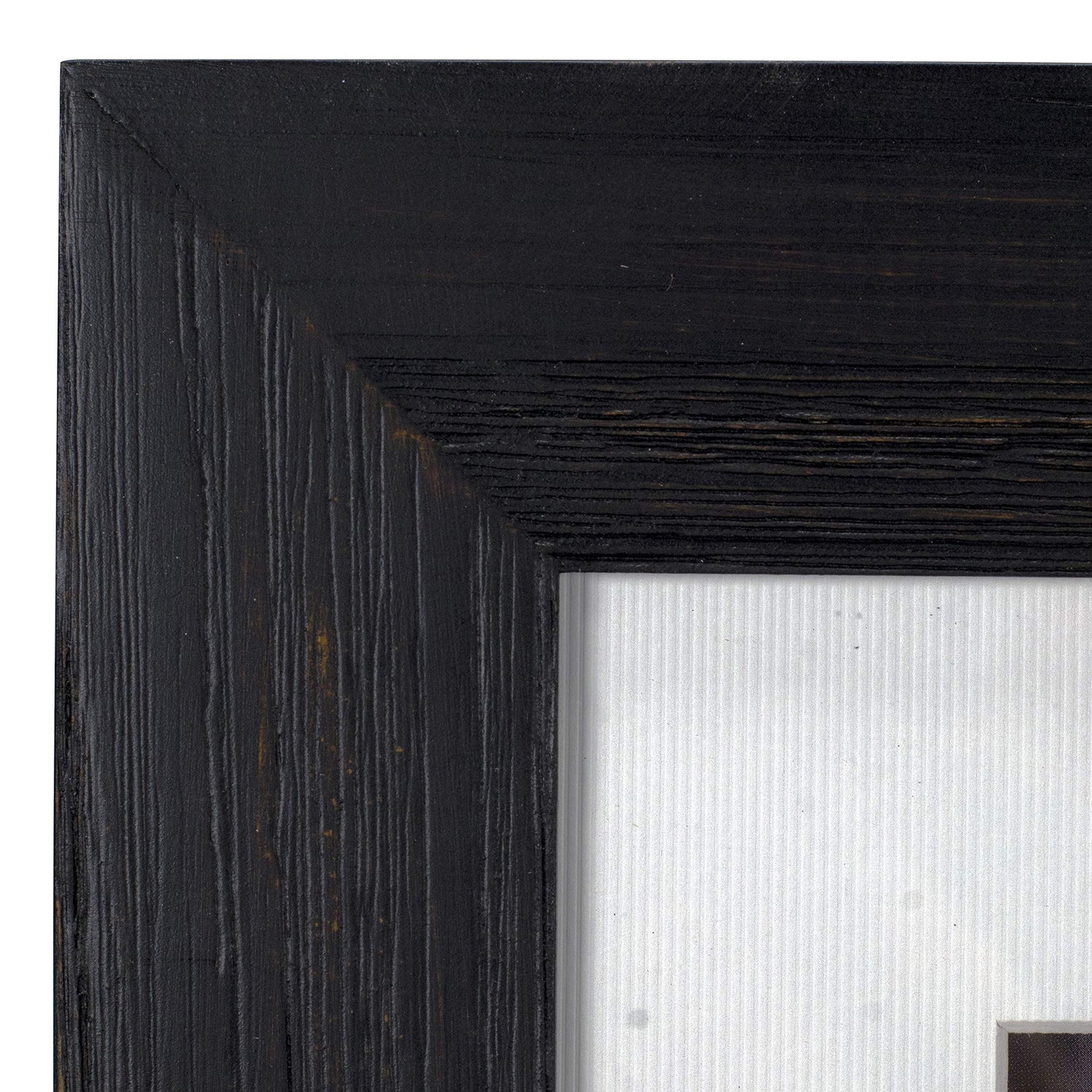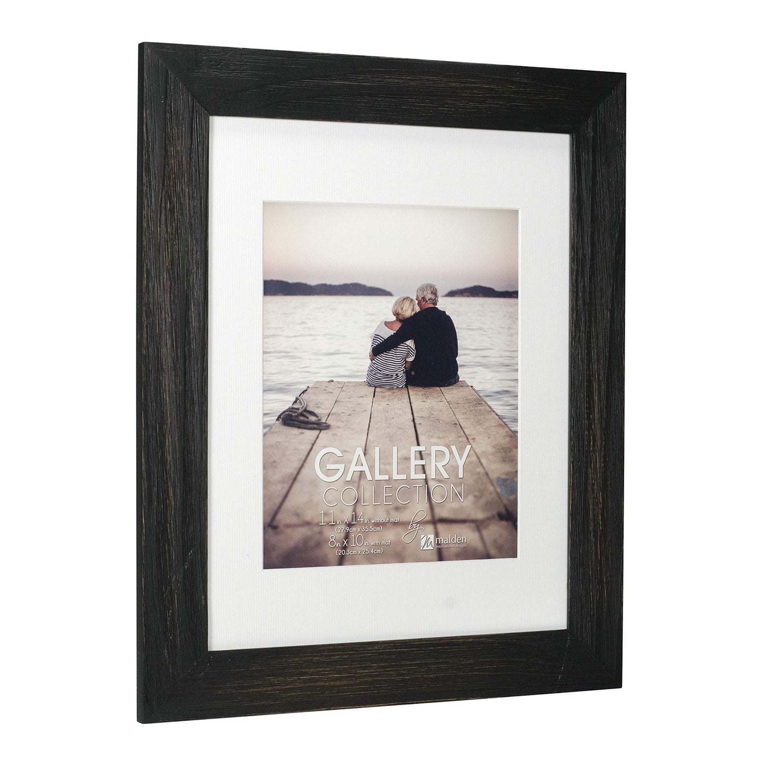 Malden 11x14 Distressed Wood Matted Picture Frame, Made to Display 8x10 with Mat, Without Mat, Black