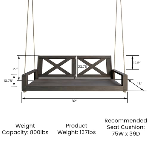 This porch swing bed is the perfect addition to any outdoor space. Made with Grade A kiln-dried yellow pine, it is hand crafted in the USA by Amish craftsman. The bold criss-cross backrest provides a comfortable and stylish look, while the sturdy construction ensures that it will last for years to come. Whether it is relaxing on a warm summer day, finding a cozy outdoor spot to read a book, or looking at the stars with family, the Malvern is sure to be the highlight of your outdoor area. Some assembly required, hanging ropes and cushions sold separately.