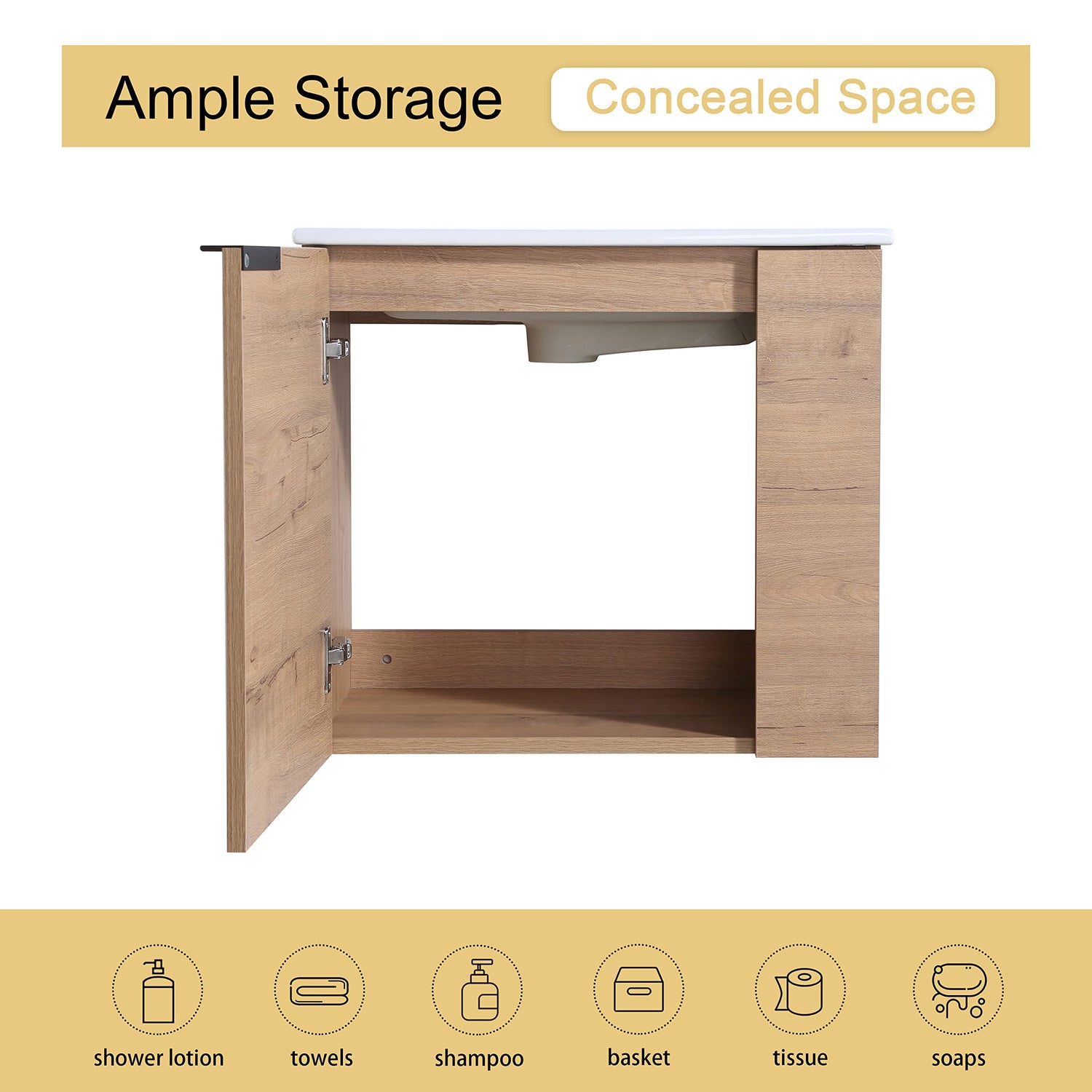 - ⭐【Floating Bathroom Vanity】 Spacious wall-mount vanity adds modern style and functionality to your modern bathroom or powder room.