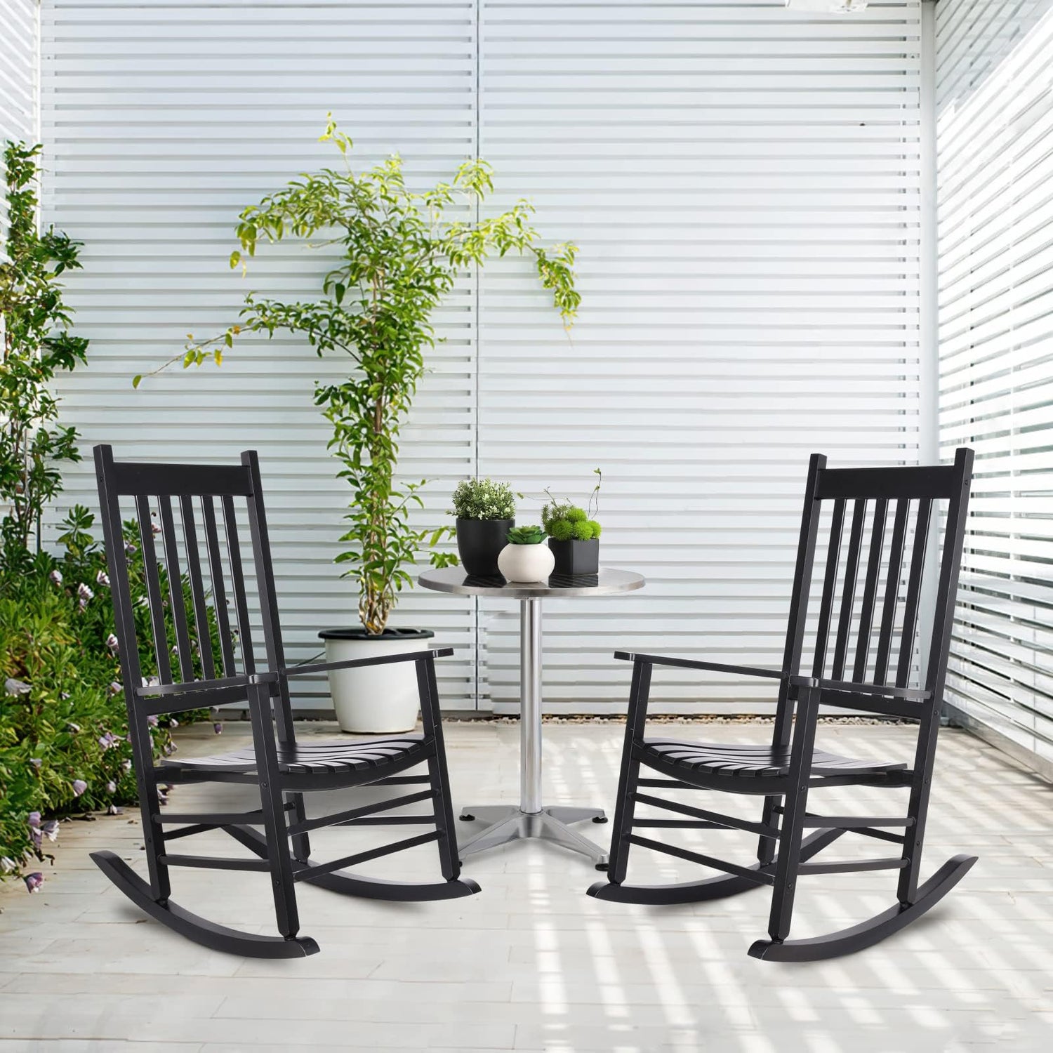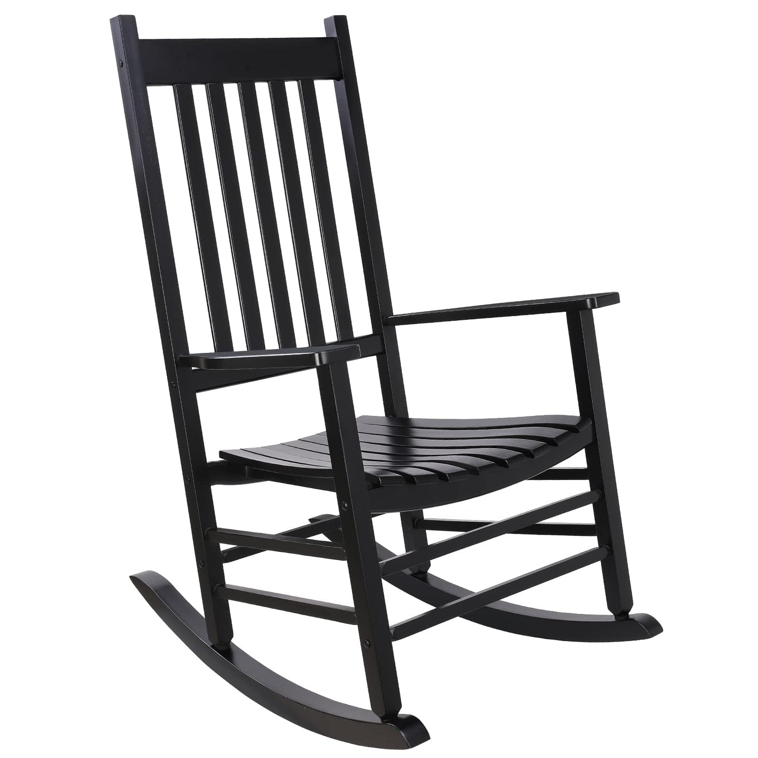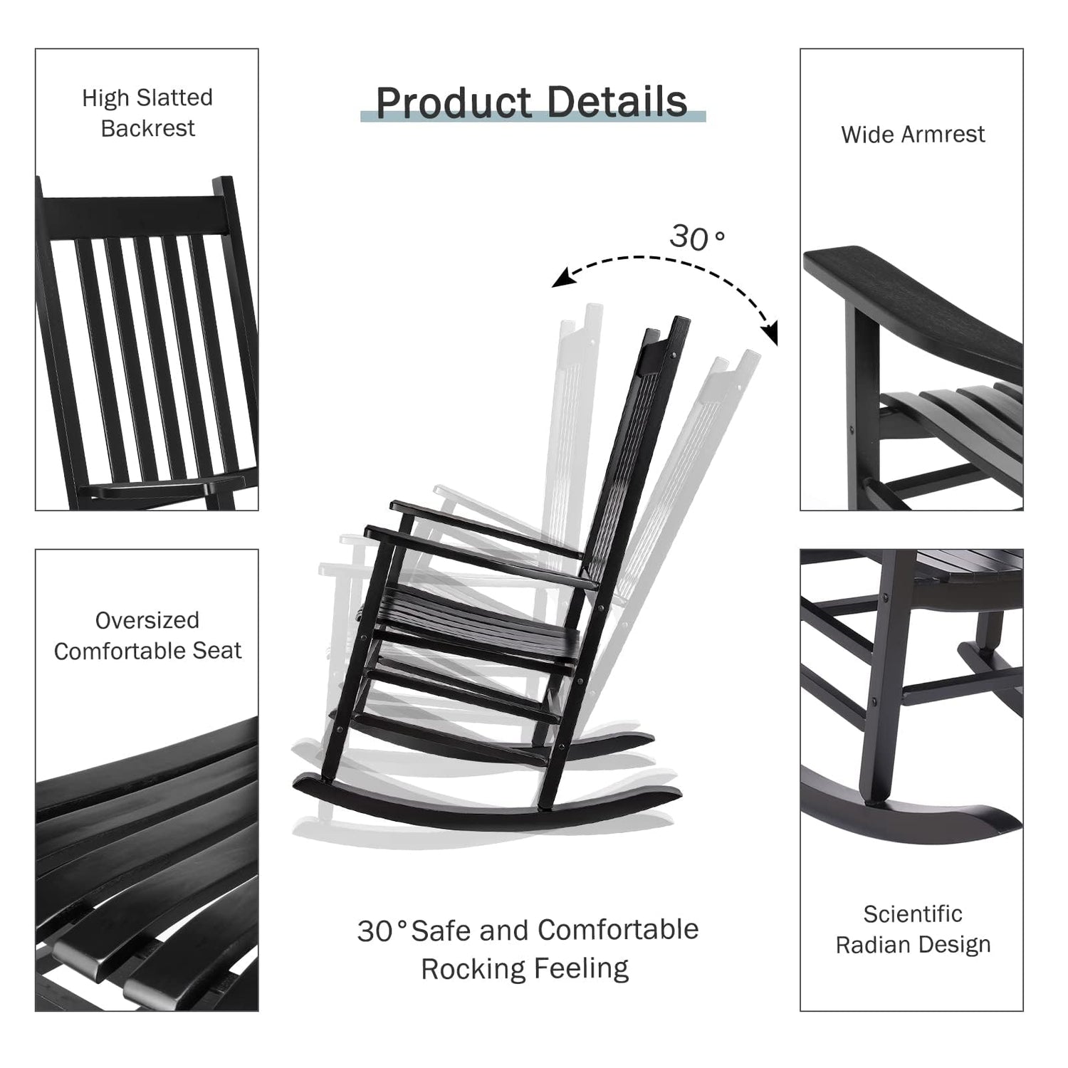 MAMIZO Wooden Rocking Chair Outdoor with High Back,Indoor, Oversized, Easy to Assemble for Garden,Lawn, Balcony, Backyard,Porch,Wooden Porch Rocker