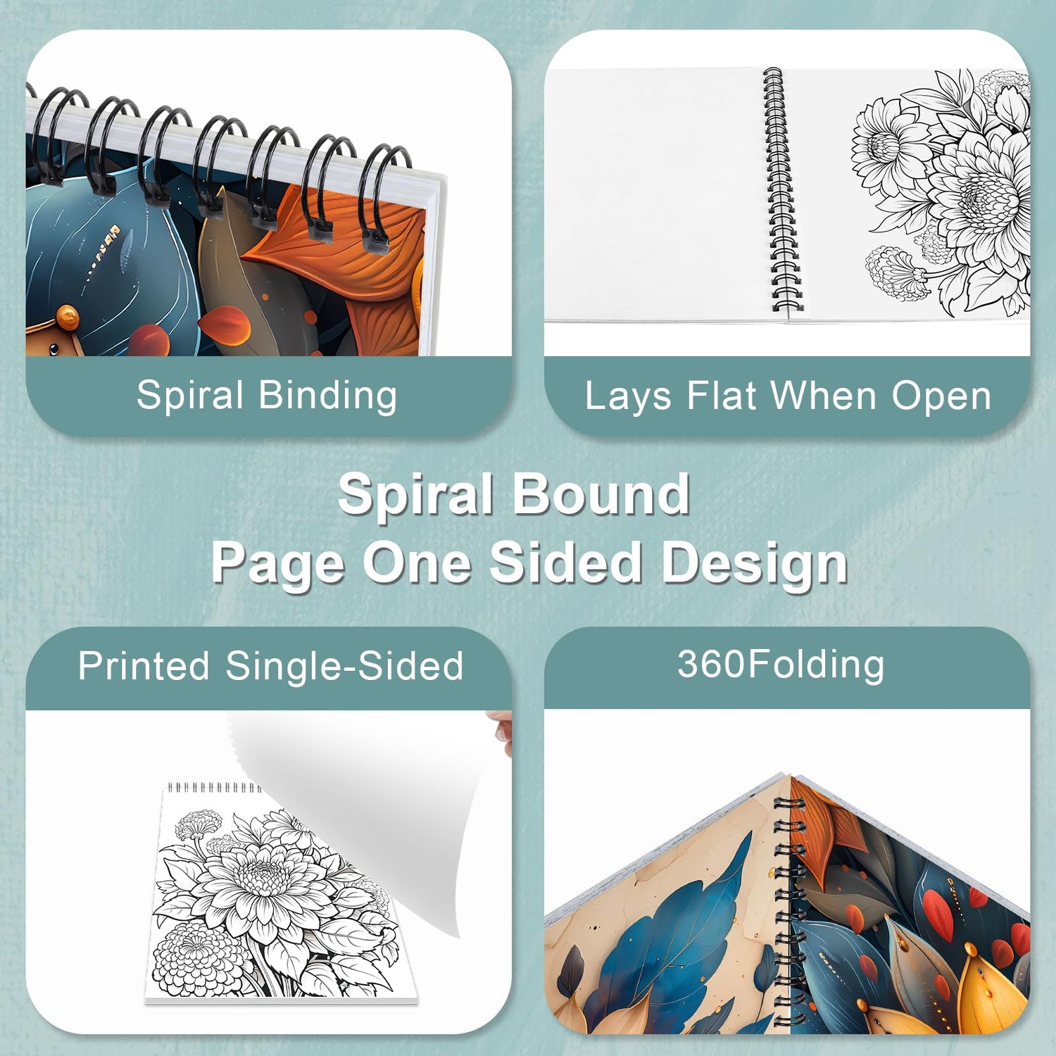 - [Spiral Bound & Page One Sided Design] The spiral binding allows pages to lie flat while coloring and makes them so easy to use, The Pages is easy tear out so you can share your creation with others