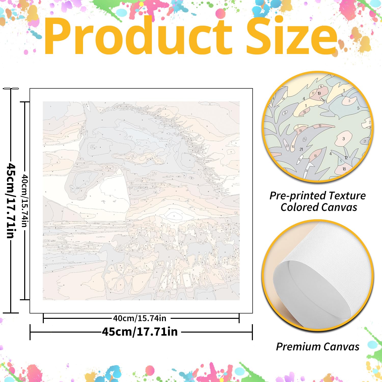 - 【HD Color Canvas】 Our horse paint by numbers uses HD color canvas, which is different from other monochrome canvases. Our paint by numbers areas are easier to distinguish and paint is easier to adhere to them. The color canvas can prevent eye fatigue and make painting easier.