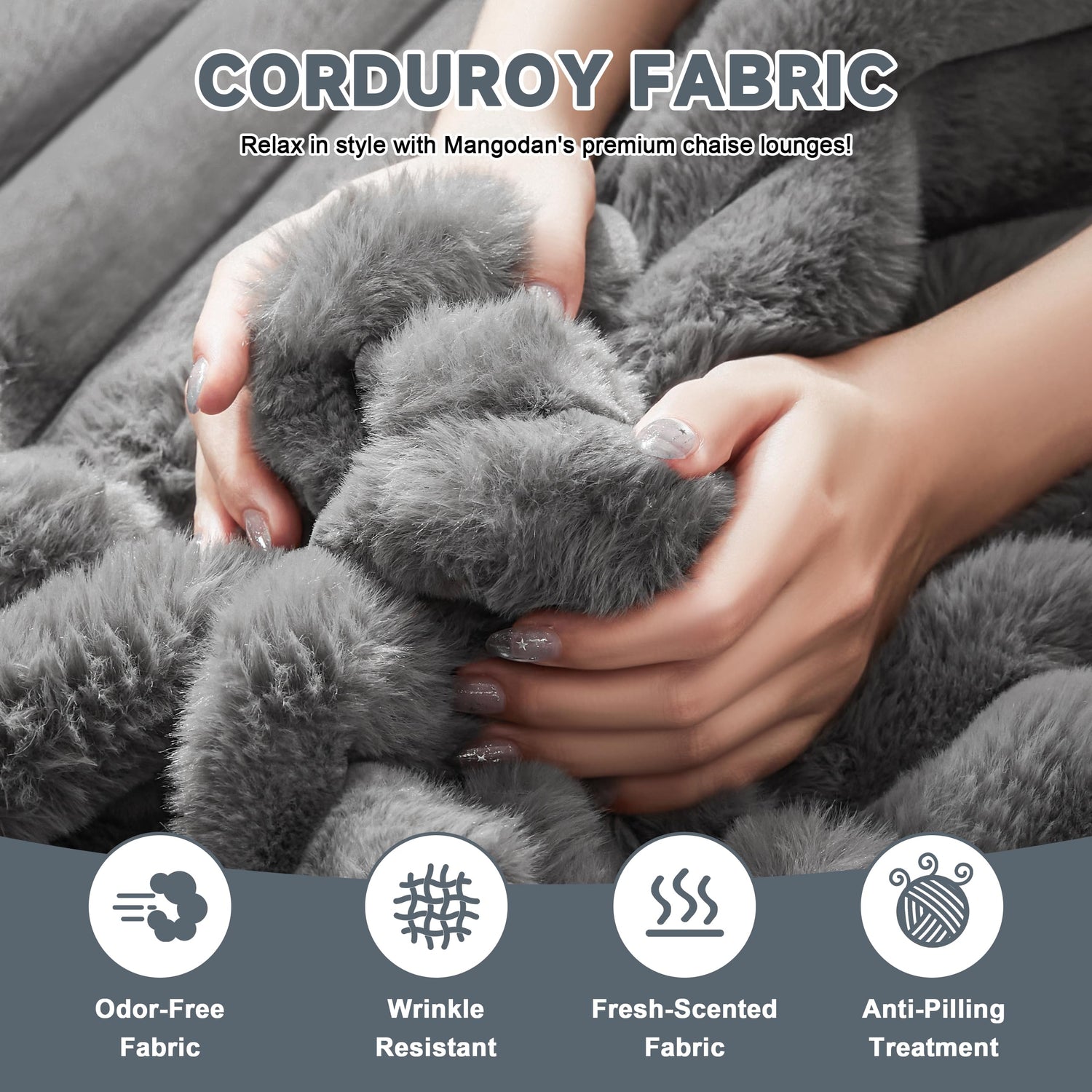 Mangodan 53.5”W Oversized Chaise Lounge Chair Indoor, Boneless Couch with 4 Pillows, Cozy Reading Chairs with Wide Arms, No Assembly Corduroy Boneless Chair, Memory Foam Couch for Living Room, Gray